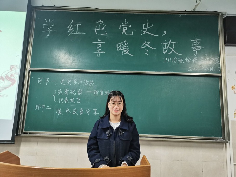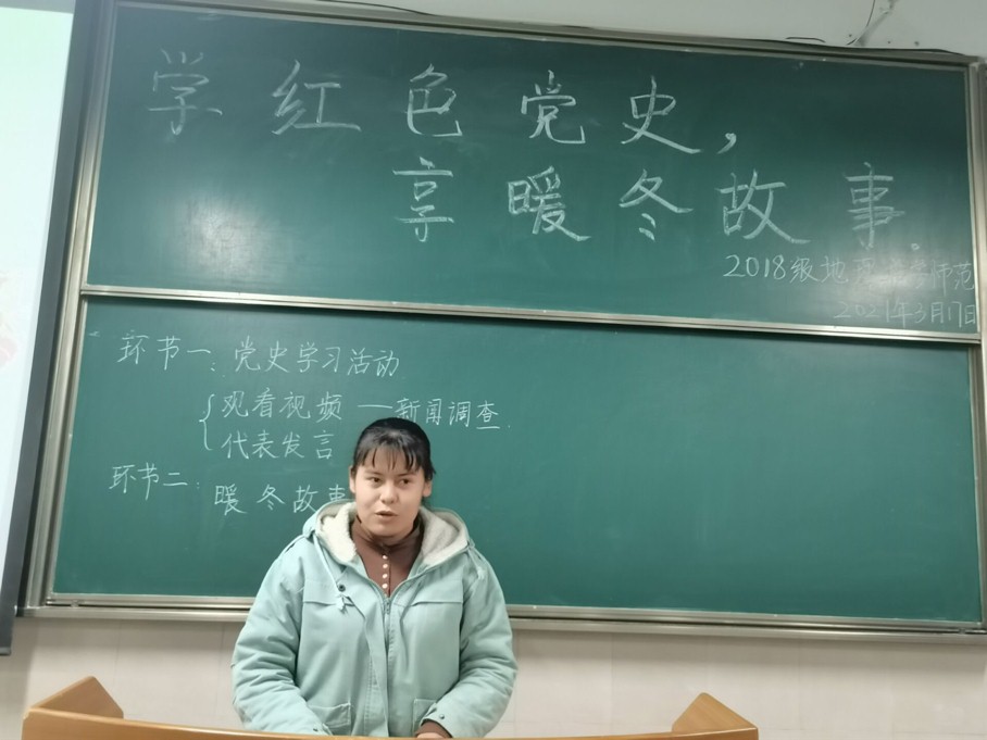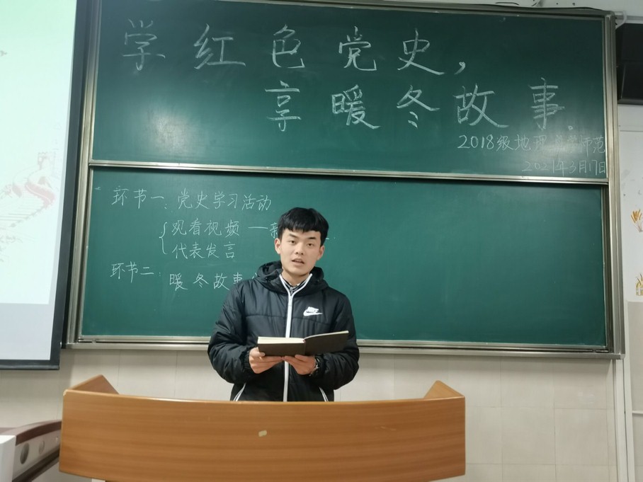 何雨婷 丁茹栩)为庆祝建党100周年,让红色基因的种子在校园生根发芽、代代相传,3月17日下午7点在4号教学楼举行2018级地理科学(师范)“学党史”主题班会。此次班会由团支书何雨婷主持,2018级地理科学(师范)专业全体成员参加。