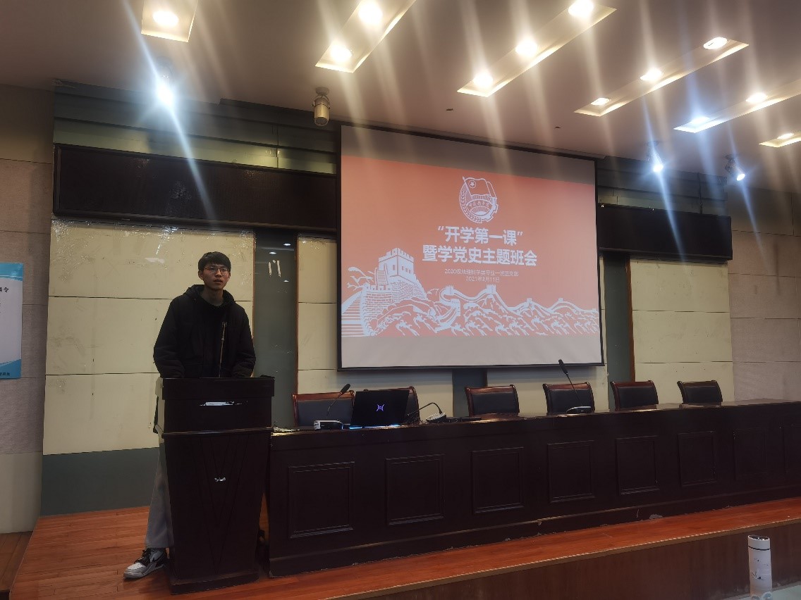 实验楼101,在班长柏文兴主持下共同参加了“开学第一课”暨学党史主题班会。