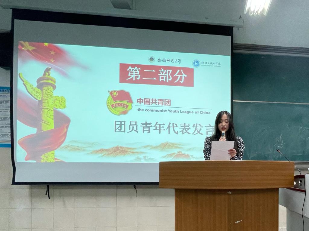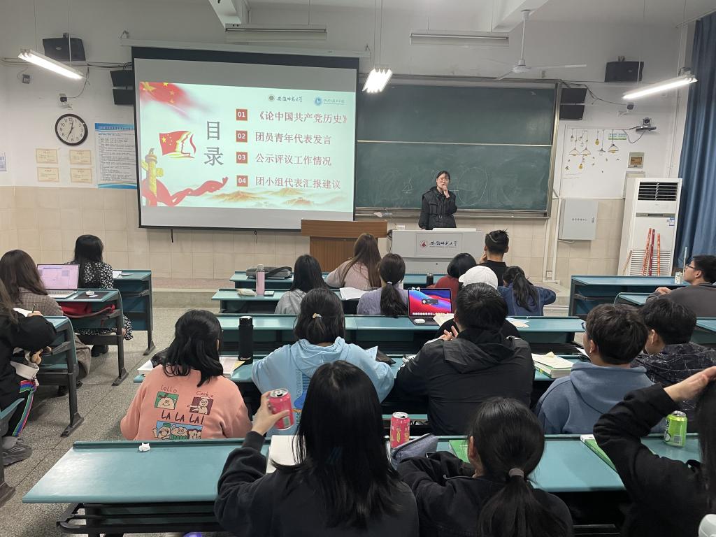 此次会议通过讲述《论中国共产党历史》、团员青年代表发言、公示评议工作情况和团小组代表汇报建议四方面展开。在会议的一开始,赵佳慧带同学们学习了《论中国共产党历史》的主要内容,并告诉大家,《论中国共产党历史》是党史学习教育明确的“指定书目”,建议同学们将学习党史内化于心。接着,团员青年代表卓玉婷等同学上台分享自己对于党史党章的学习感悟,明确自己在下一阶段对于党史的学习目标与任务。会议的第三部分,徐雨霏将各团小组团员评议情况对大会作了报告,并公示了各团小组评议优秀名单。会议的最后,各团小组的组长对于自己所负责小组的工作进行总结。