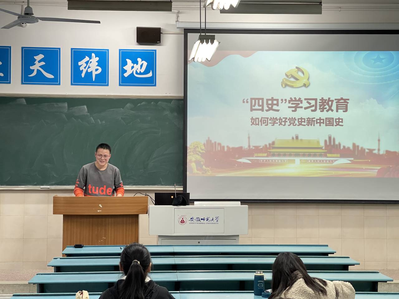 2020级地理科学拔尖班在教室举行了“‘四史’学习教育 如何学好党史新中国史”主题班会,会议由团支书吴阳磊主持,2020级地理科学(拔尖班)全体同学参加。