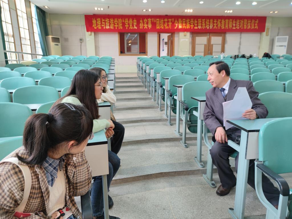 最后,乔静提出,希望少数民族同学真正以学校和学院为家,秉承“厚德 重教 博学 笃行”的校训和“经天 纬地 弘道 明理”的院训,志存高远,刻苦学习,为中华民族伟大复兴的中国梦贡献青春力量,让各民族同学们像石榴籽一样紧紧抱在一起。仪式结束后,老师们各自与结对帮扶的同学相互留存了联系方式,增进师生了解,深入亲切交流。