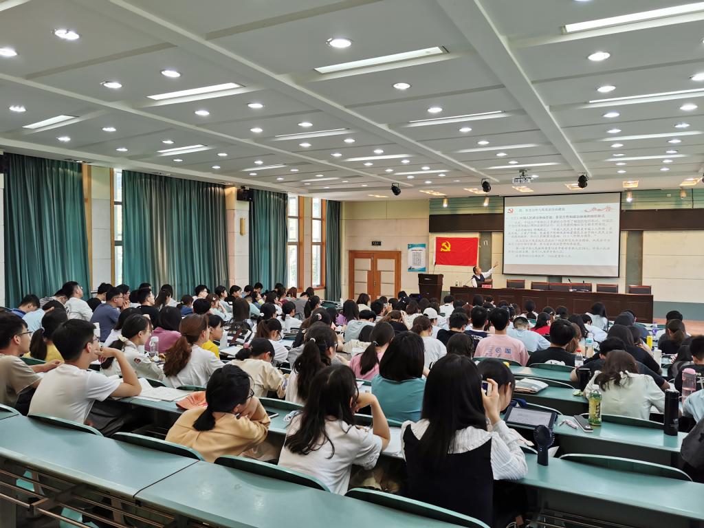 分党校邀请马克思主义学院王瀛培老师以《中国共产党从革命到执政及其历史必然性》为主题为学员讲授党课,校第十二期发展对象培训班全体学员在院实验楼101报告厅聆听了党课。