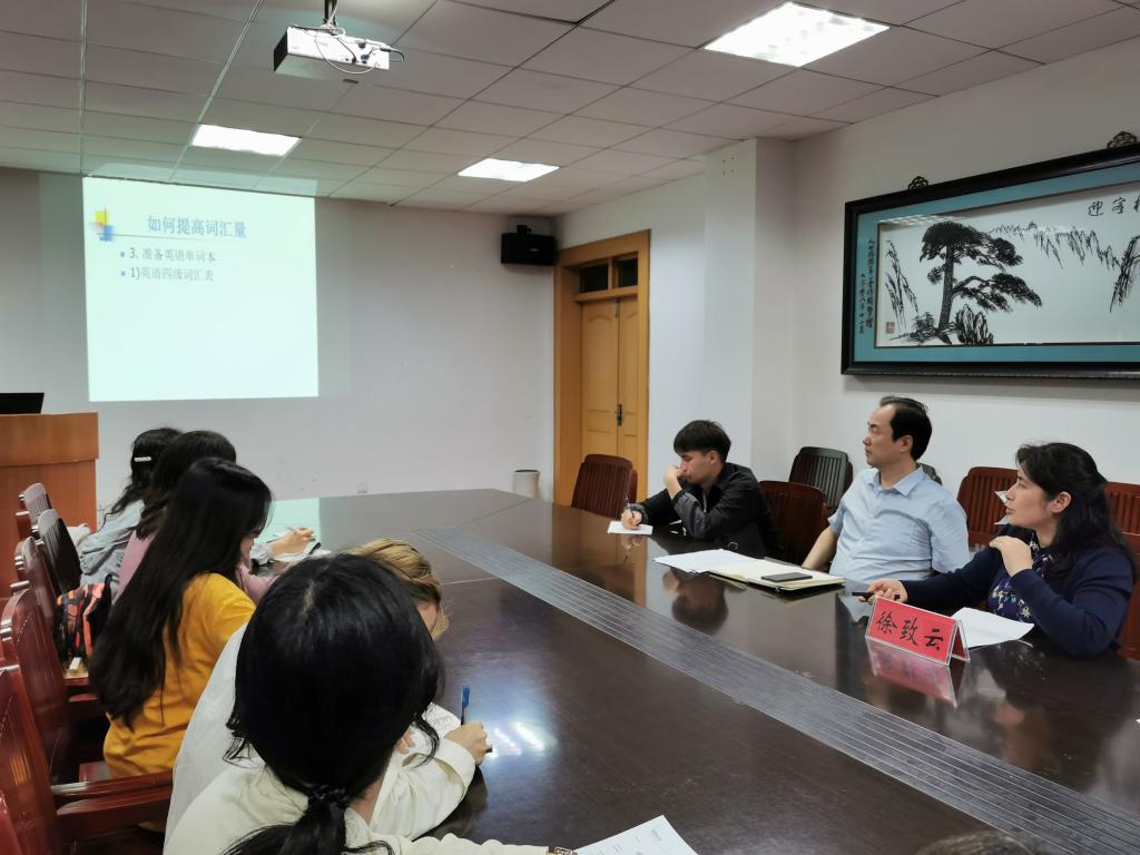 副教授、硕士生导师徐致云应邀为同学们主讲《四级考试学习方法及技巧》课程,足探比分