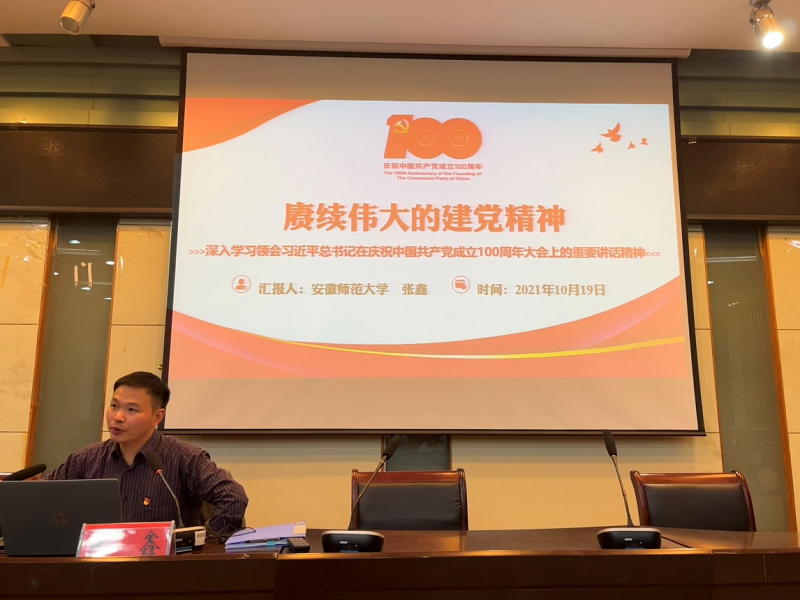 张鑫从“四个伟大成就”角度回顾了中国共产党百年光辉历程,其间,播放了改编版《少年》的音乐短片,有效调动了同学们的学习兴趣与热情。张鑫在授课时为培训学员详细诠释了中国共产党的伟大建党精神,并对同学们提出了寄语。