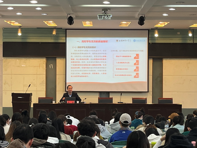 校第11期党员培训班和校第62期入党积极分子培训班全体学员讲授党课,全体学员在院实验楼101报告厅聆听了党课