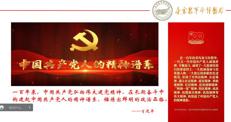 王咏对报告进行了简要总结,参会学生代表在线上与倪军馆长对金寨县博物馆未来的规划发展进行了互动交流。一寸山河一寸血,一抔热土一抔魂,历史就是最好的教科书和营养剂。此次活动,大家被革命先辈坚定的理想信仰、高尚的道德情操、无私无畏的奉献精神所深深感染,必将激励着我们不忘初心、牢记使命、团结奋斗、勇毅前行。