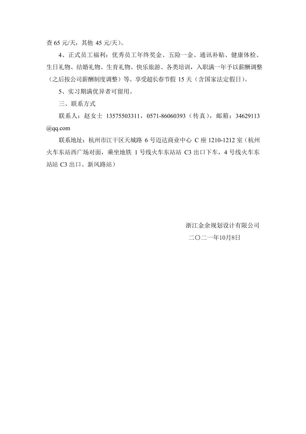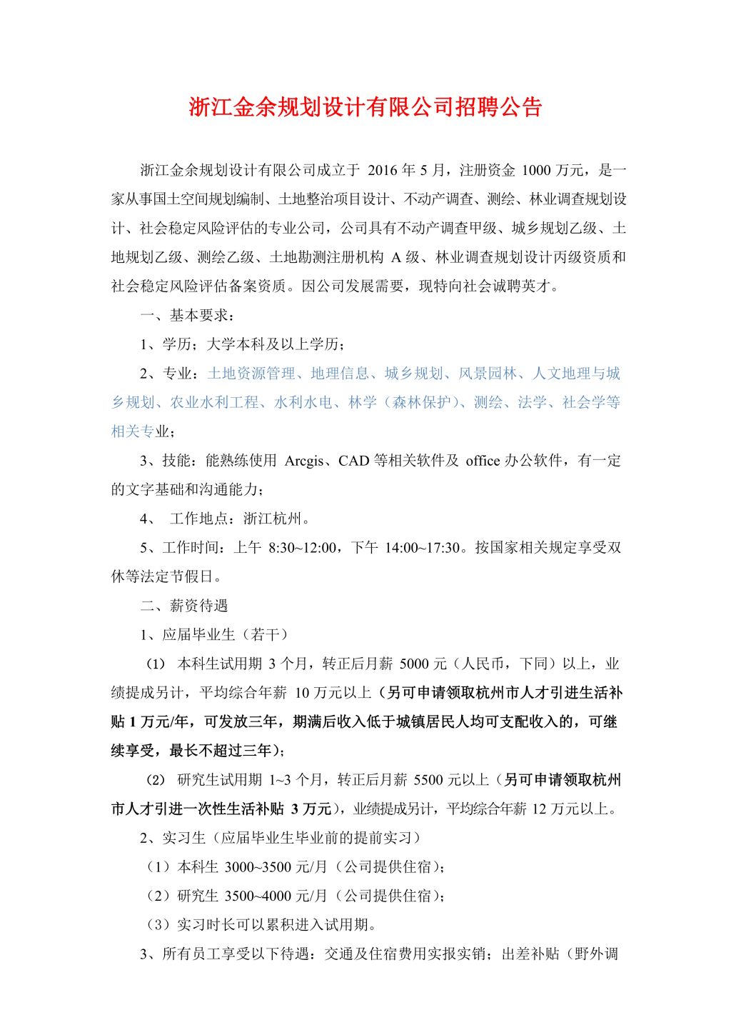 浙江金余规划设计有限公司招聘简章