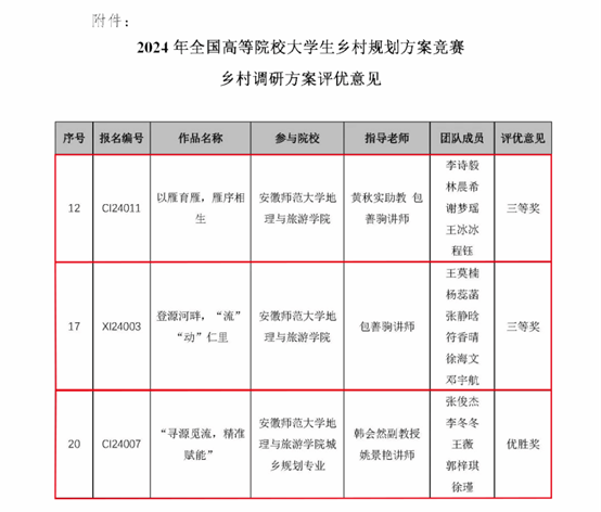 地旅学子在2024年全国高等院校大学生乡村规划方案竞赛中喜获佳绩