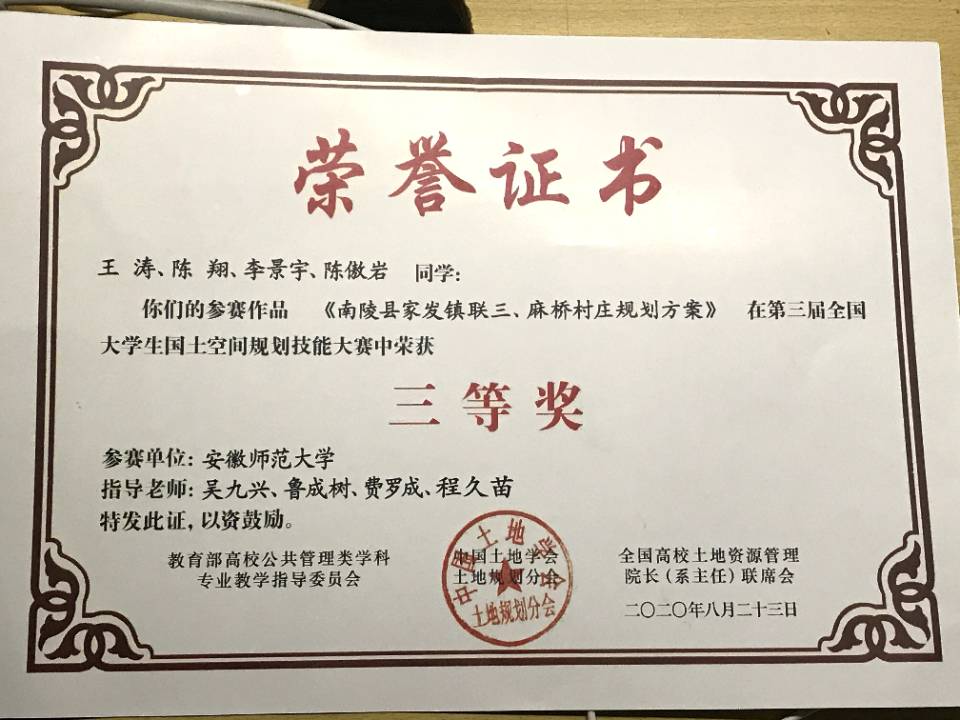 全国高等院校大学生乡村规划方案竞赛佳作奖
