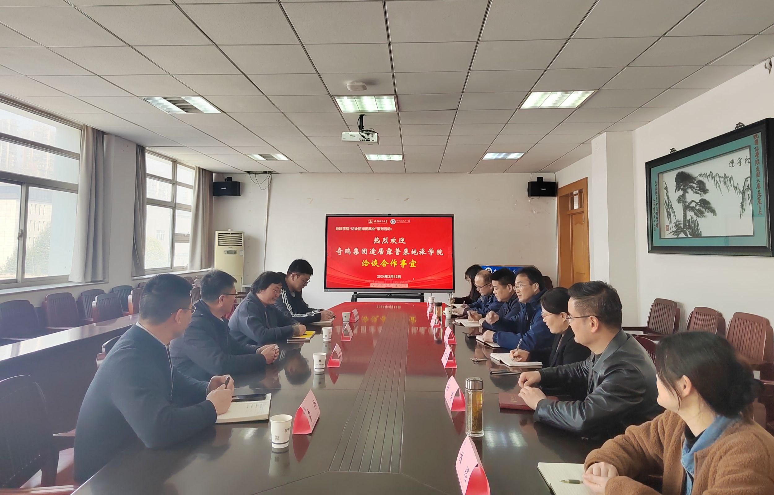 与途居露营投资管理股份有限公司在学院三楼会议室举行校企合作交流会。奇瑞控股集团招聘中心主任李伟,途居露营投资管理股份有限公司总经理钱奕安,人事总监司琪,综合部部长乔启明,足探比分
