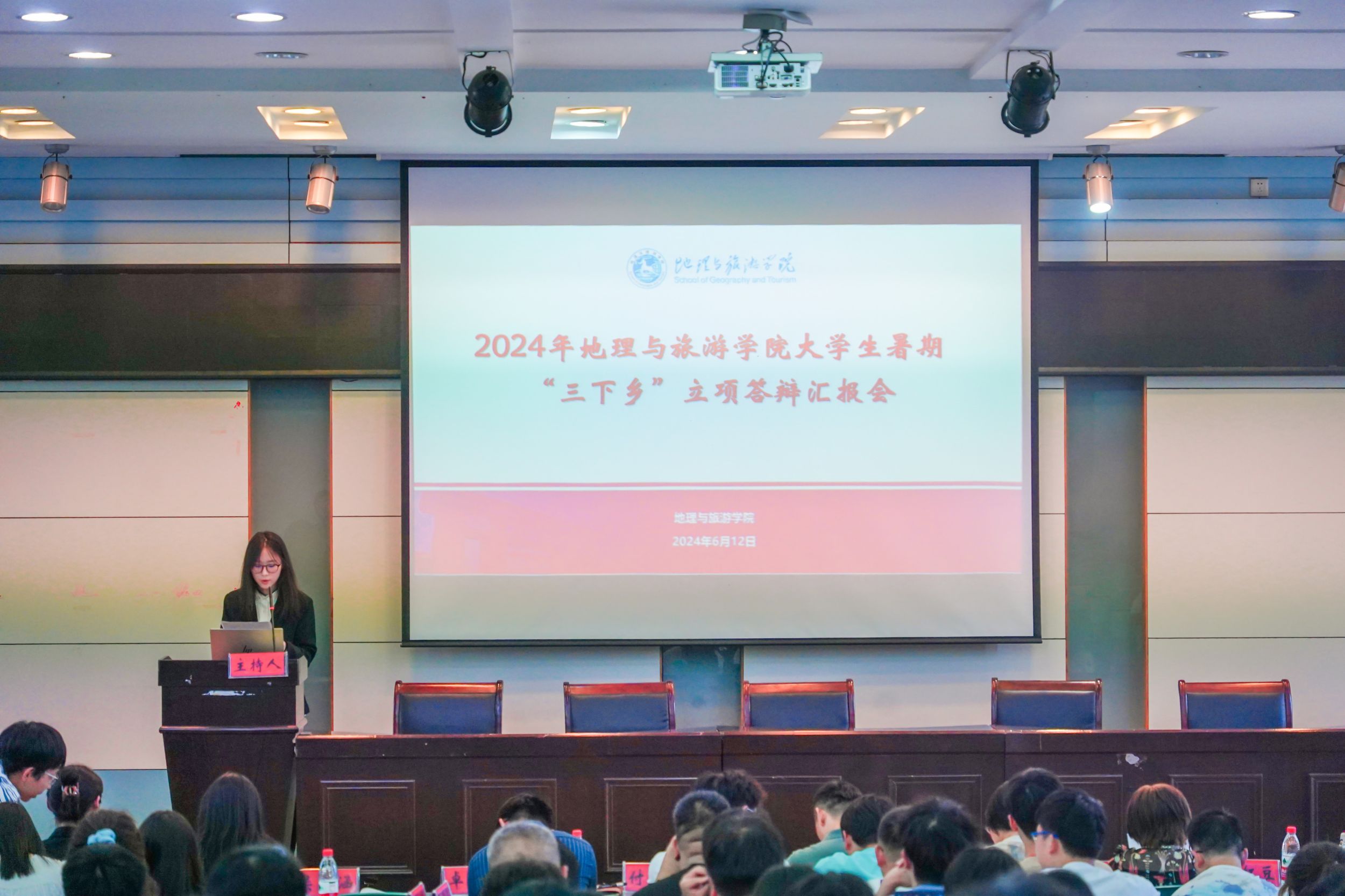 在学院实验楼101报告厅举行了“行走的思政课堂”2024年大学生暑期“三下乡”社会实践立项答辩汇报会。学院党委副书记付勇、地理科学专业教师徐仪红、旅游管理专业教师黄薇薇、土地资源管理专业教师沈非、城乡规划专业教师姚景艳、地理信息科学专业教师卓伟、学院团委书记以及专兼职辅导员代表担任本次汇报会评委,各团队代表到场参与。