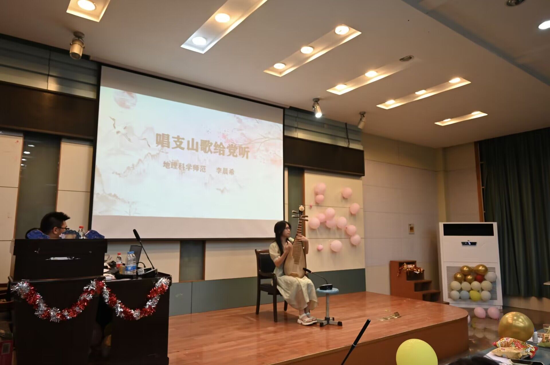 在大家热烈的掌声中,本次晚会正式拉开帷幕。中秋晚会的舞台上,传统节日的意蕴与创新的思想碰撞交融,绽放出独特的色彩。舞蹈表演中,飞扬的衣角展现了青春活力与激情,用富有节奏感的鼓点点燃了在场的每位同学;来自傣族的同学程凡琦,一曲《竹林深处》,琴声悠悠,轻歌曼舞,裙脚飞扬,如送一寸清风入怀,如入竹林深处;王希晨同学用琵琶诠释的《唱支山歌给党听好歌》,曲水流觞,琴声铮铮,拂去秋日最后一缕暑气。水向东流,今夜花开月正圆,一曲琵琶东风破,稻香悠悠再欢唱。一曲命运,讲述物转星移,试问今夕何夕,在生命的谜语里,我们终会用自己青春的声调做出自己的诠释。