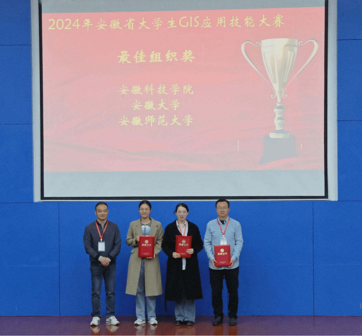据悉,大赛共收到135支正式有效队伍报名,参赛学生超过500人,指导教师160人,大赛分GIS基础应用、高级挑战和学术论文展示三个组别。经过紧张激烈的角逐,共评出一等奖14项、二等奖28项、三等奖41项,25位老师获得最佳指导教师奖,安徽科技学院、安徽大学和安徽师范大学三所高校荣获最佳组织奖。