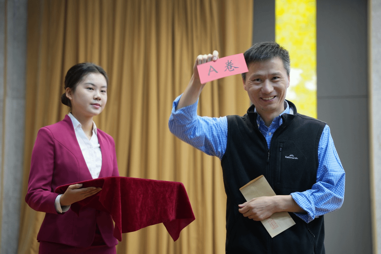 张书亮在致辞中阐述了举办本次大赛的重要性,并预祝各参赛队伍取得优异成绩。乐成峰现场抽取试卷。