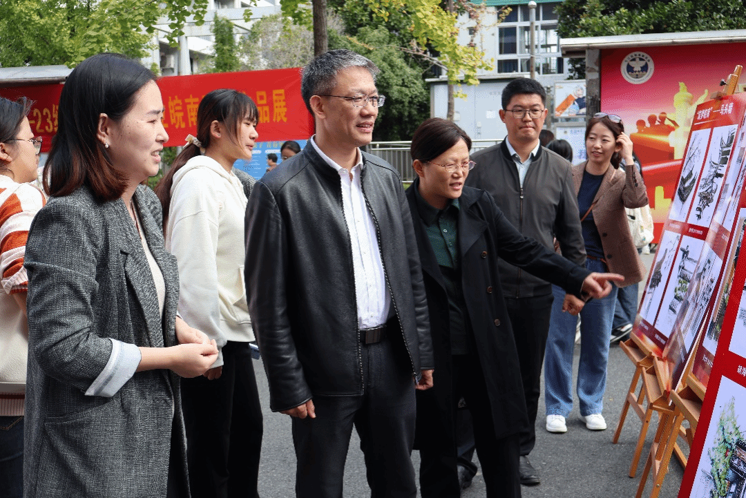 活动现场,共展出了128幅学生手绘作品,吸引了大量师生驻足观赏。同学们热情地给参加展览的领导老师们讲解自己的作品。崔光磊肯定了本次实践教学中文化传承的重要性,并对丰硕的绘画成果给予了高度评价。他表示徽州文化是极具地方特色的区域文化,包含了深厚的文化特色,是学生探究和展开学习的重要资源。方凤满表示学生们从入学时的绘画基础提升到现在的水平,体现了教育教学的成效,见证了学生们的努力与成长。她鼓励大家继续用脚步丈量画里乡村,用双手描绘墨彩皖南,为城乡规划专业的发展贡献自己的力量。