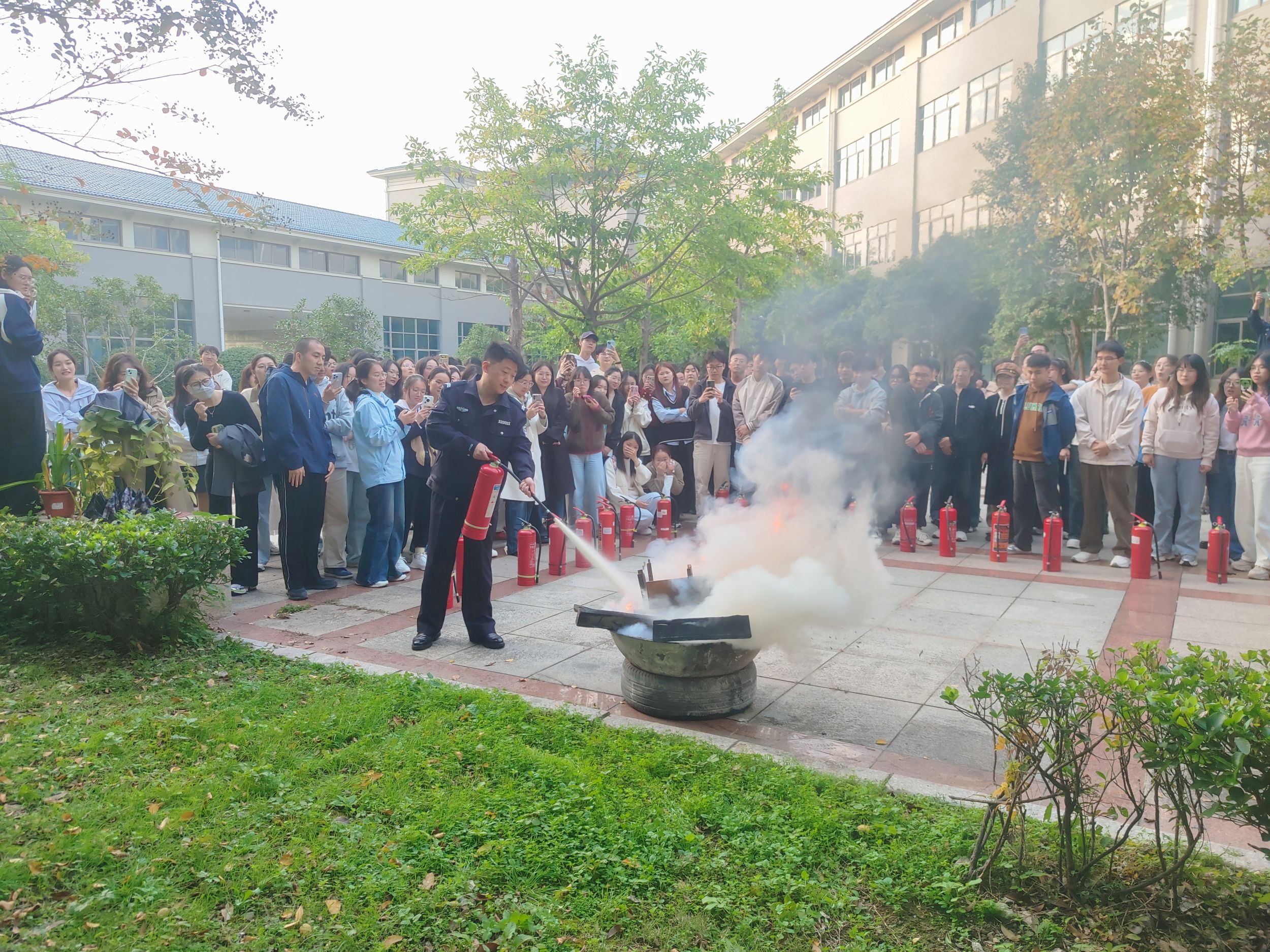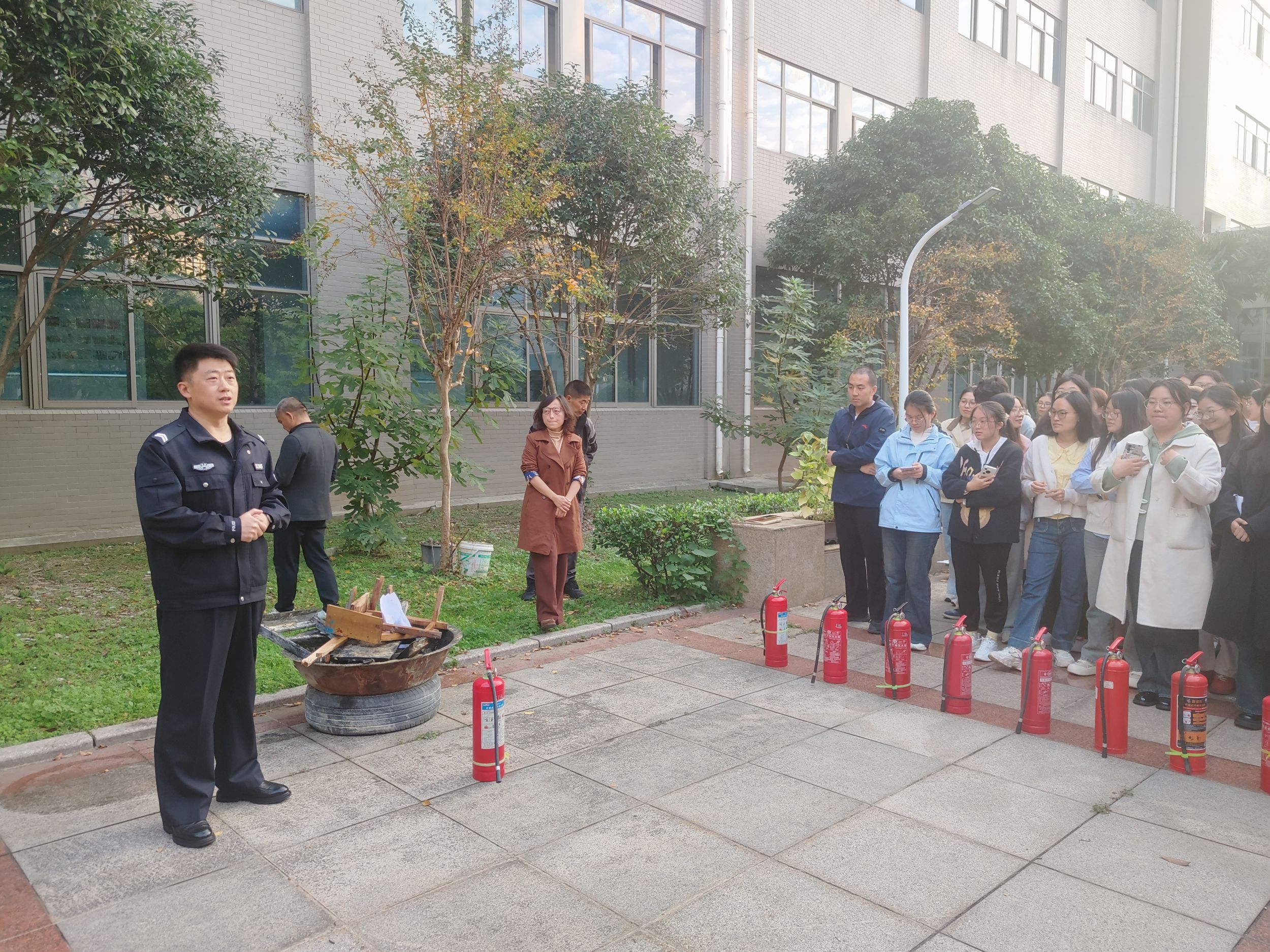 同时,为进一步提升师生安全知识技能,学院还组织开展了消防应急演练,邀请校保卫处消防科孙栋老师为学院师生现场讲解消防安全知识,并组织了灭火技能培训。