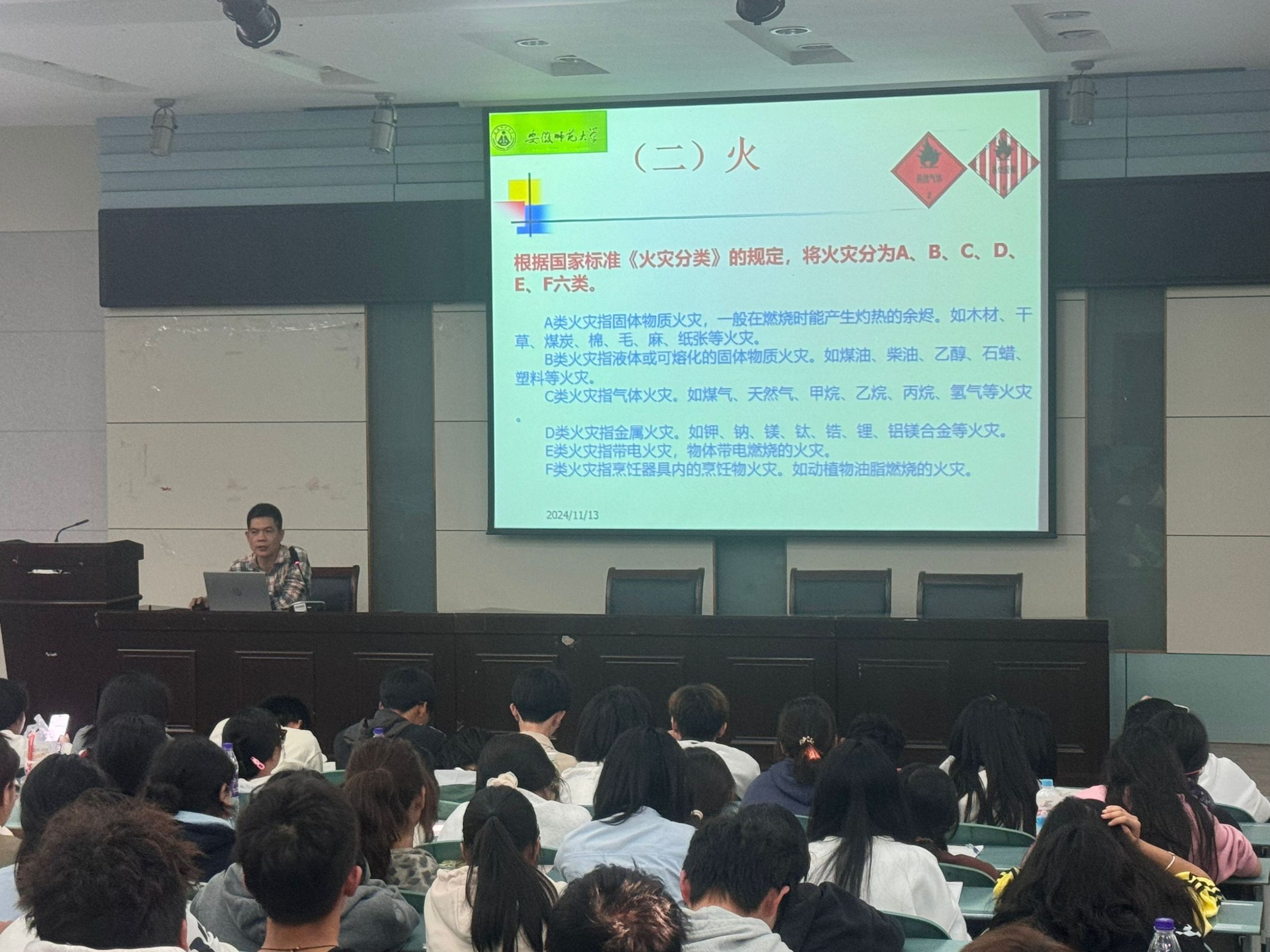 于11月13日下午在实验楼101开展实验室安全教育主题讲座。讲座由原校实验室安全督查组成员张平究教授主讲,学院副院长汪文文、实验员林跃胜以及2024级地理科学专业全体本科生和自然地理学专业全体研究生参加。
