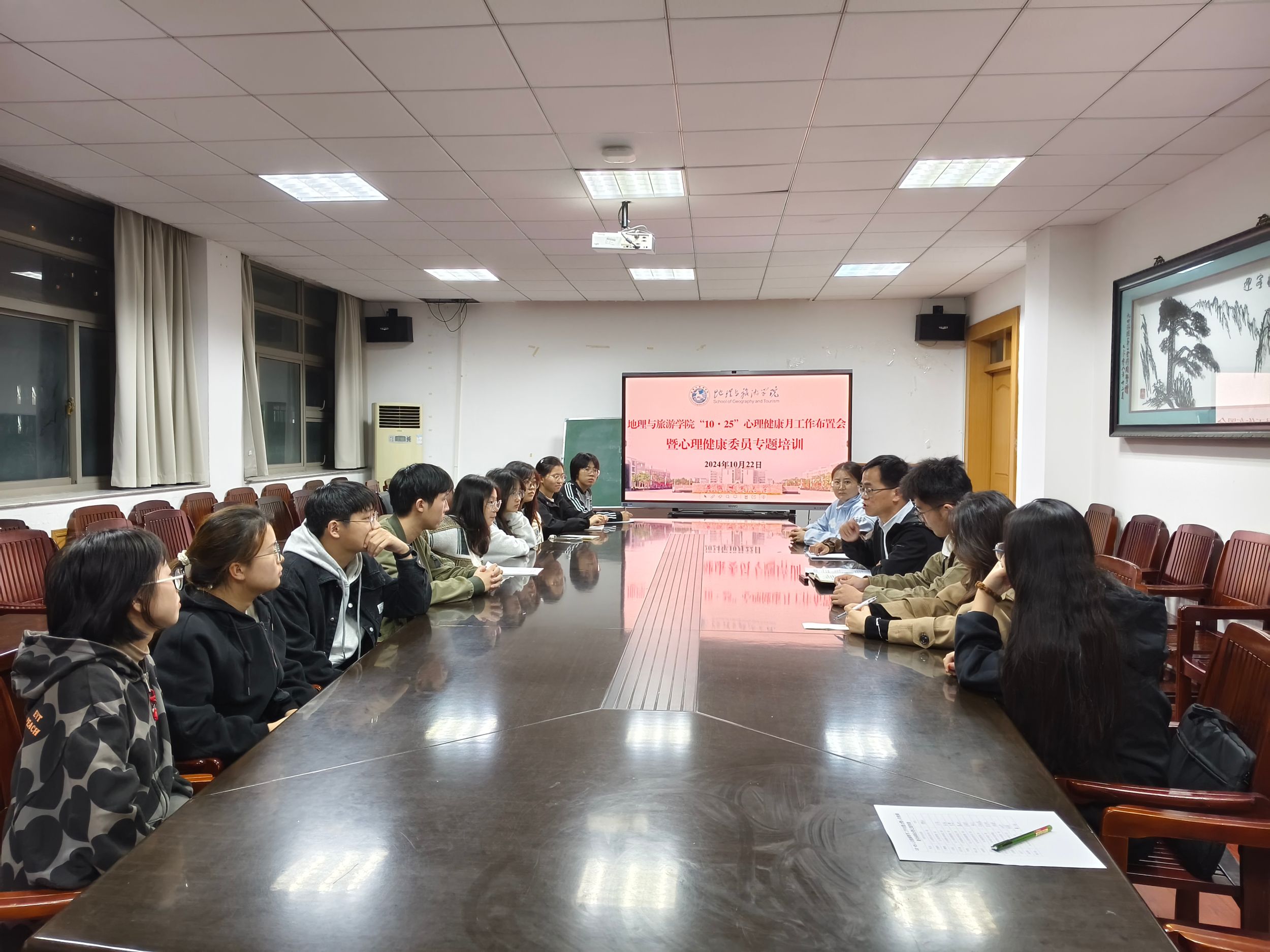 培育学生热爱生活、珍视生命、自尊自信、乐观向上的心理品质,学院以“10·25”心理健康教育月为契机,将经常性心理健康教育关怀和集中性心理健康教育活动相结合,覆盖全体学生开展心理健康测量,召开学生工作委员会,召开“10·25”心理健康教育月工作布置会暨心理健康委员专题培训,建立“宿舍-班级-学院-学校”四级心理健康干预和资助关怀体系,做到学生全覆盖建档和重点群体经常性谈心谈话、咨询辅导,辅导员常态化走访学生宿舍、教室,学院定期研判学生心理状况。学院也利用官方微信公众号发布心理健康和生命健康教育推文,面向全体本科生开展全覆盖生命教育专题活动和心理健康教育主题班会,全方位开展心理健康状况摸排和特殊群体帮扶。此外,学院还结合学生喜闻乐见、参与度比较高的心理团辅活动,让学生在文体活动中释放心理压力,养成阳光心态,提高心理品质。共促学生心理健康,护航学生健康成长。