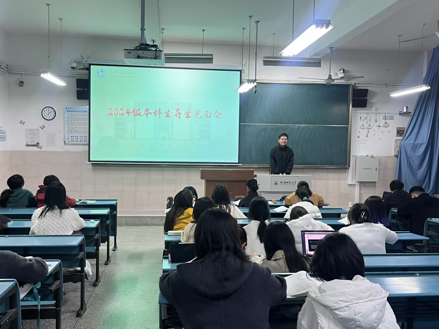 为让新生更好的了解专业,明确大学学习目标和方向,学院分专业组织开展师生见面和培养方案解读会,各专业负责人向同学们介绍学院历史、师资队伍、学科建设和招生情况,并对人才培养方案做深入细致的解读。专业课教师代表结合自身的学习,工作和科研经历,针对专业课学习的方式方法、就业考研等问题为新生们指明了方向,对培养目标、课程目标和毕业要求进行了深入的分析。学院为每一位新生配备了专业导师,定期与学生进行交流,了解学生的学习进展、兴趣方向及遇到的困难,提供针对性的学习建议和解决方案,提供必要的心理辅导和生活帮助。学院高度重视朋辈引领和榜样示范作用发挥,从高年级遴选优秀学生代表为新生提供全方位青春领航,开展本科生导生工作,引导新生适应大学学习生活,及时了解和反馈新生遇到的各类问题,为新生提供日常事务咨询、学习生活指导。同时,针对新生普遍存在的适应性问题、学业问题和发展困惑,学院开展“团结花开”课程辅导,聘请《高等数学》课程小导师晚自习跟班辅导,聘请大四保研骨干晚自习跟班指导。