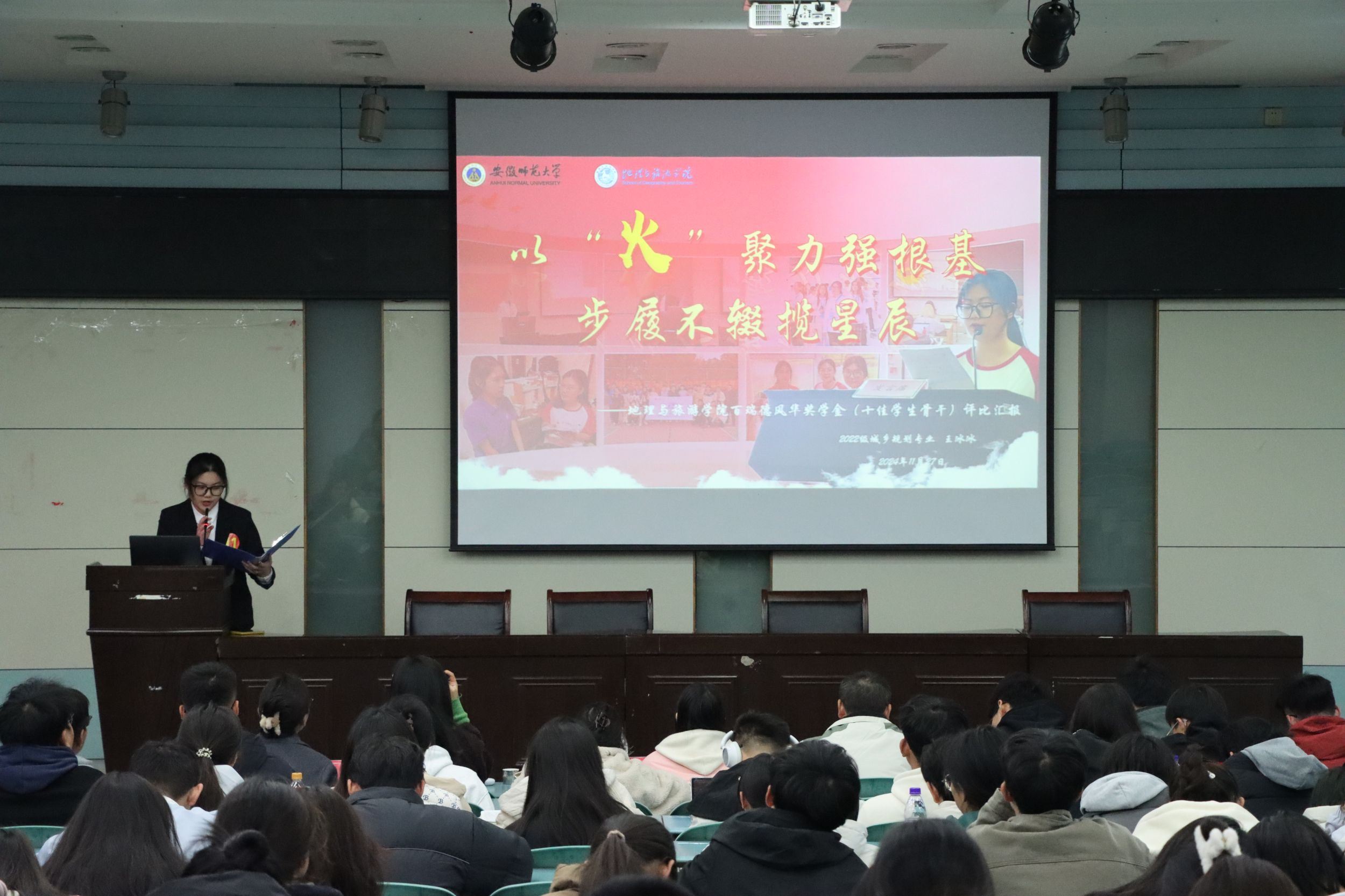 百瑞德风华奖学金暨“十佳学生骨干”的评选办法。经过学生申请、班级推荐和学院初审,共有25名来自不同专业的学生脱颖而出,进入了汇报评比环节。汇报人依次上台,通过PPT现场展示,以饱满的热情和专业精神,展现了个人在学习、实践、组织协调等方面的风采,同时表达了对未来使命任务的担当和对未来蓝图的描绘。