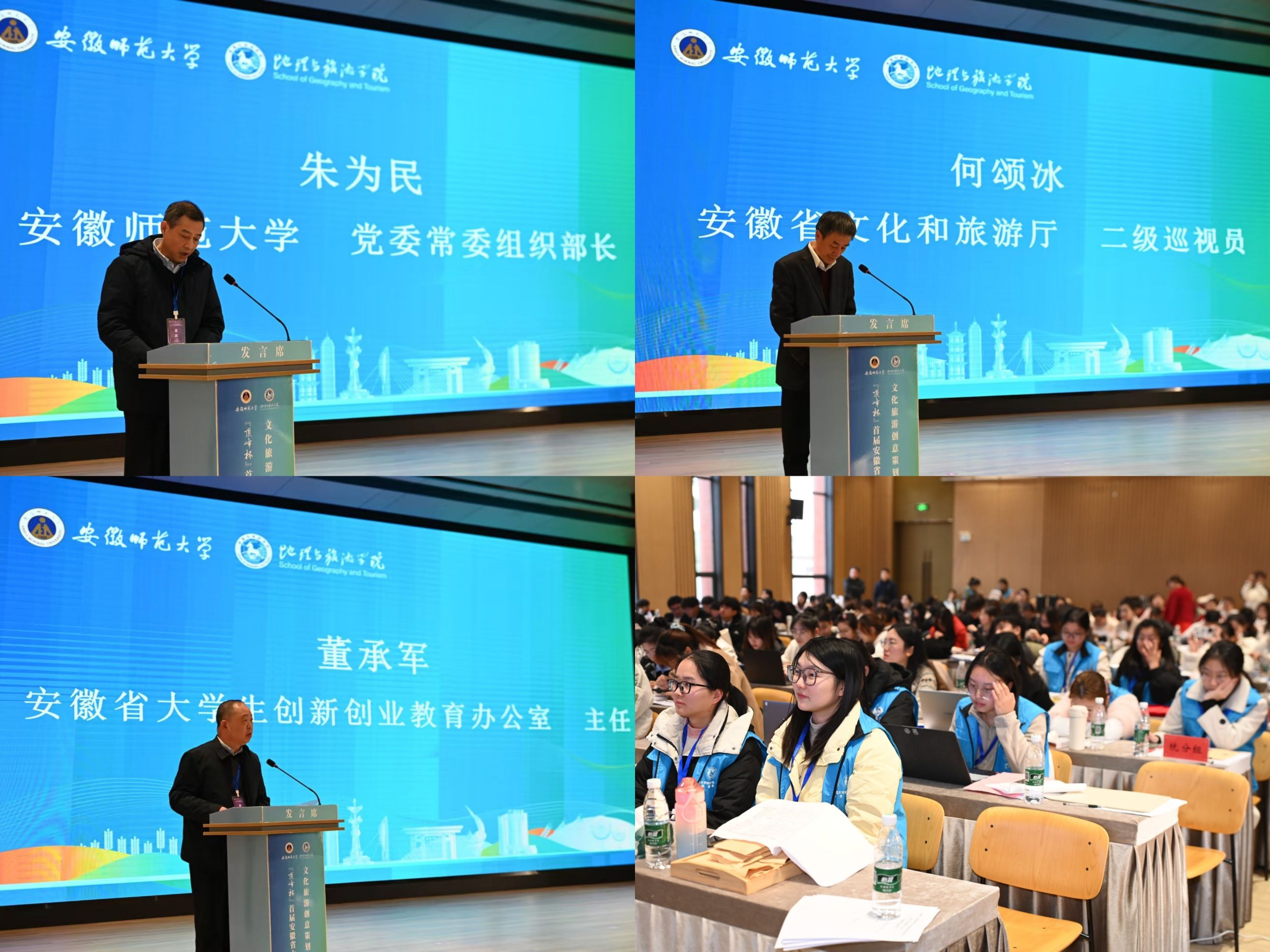 12月7日上午的决赛开幕式上,朱为民代表安徽师范大学向所有专家评委和参赛师生表示诚挚欢迎,并表示,作为主办单位之一,将为大家提供优质的赛程保障和服务,预祝旅游线路策划、主题旅游产品策划、旅游营销策划三个赛道作品能够精彩展示并为文旅行业发展提供有效建议。何颂冰在讲话中表示,此次大赛以实际行动贯彻落实相关会议与习近平总书记考察安徽精神,希望在各界支持与共同努力下,成为文化旅游创新发展的重要平台、大学生展示自我的精彩舞台。董承军表示,安徽省重视高校创新创业能力建设,期望参赛高校通过比赛提升办学与人才培养质量,为安徽建设做贡献。