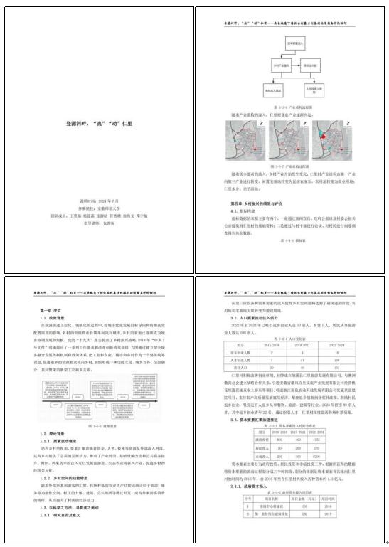 作品《登源河畔,“流”“动”仁里》通过对村庄全要素全过程全产业全方位调研分析,以要素流动视角来探寻旅游型传统古村落乡村振兴的绩效和评价。