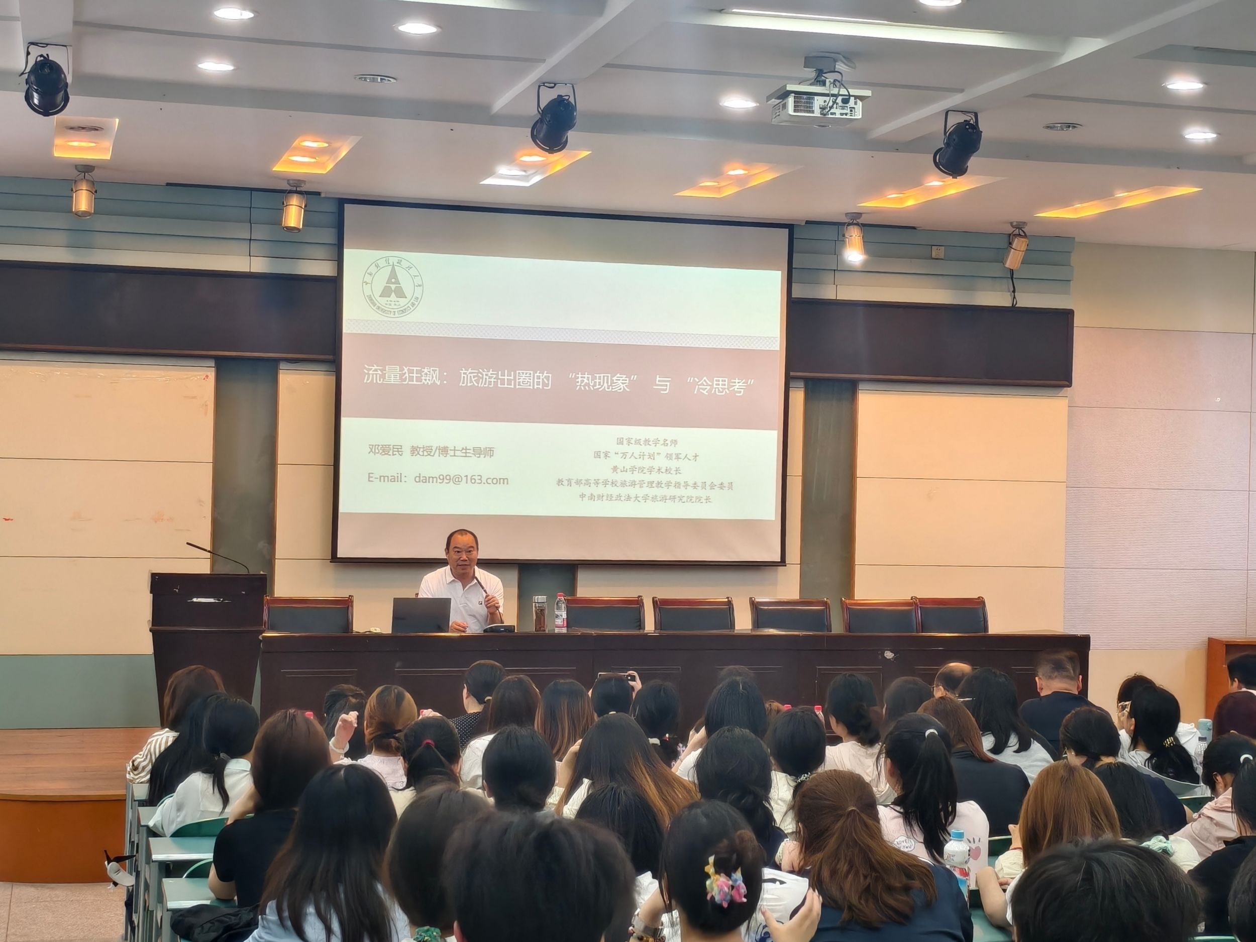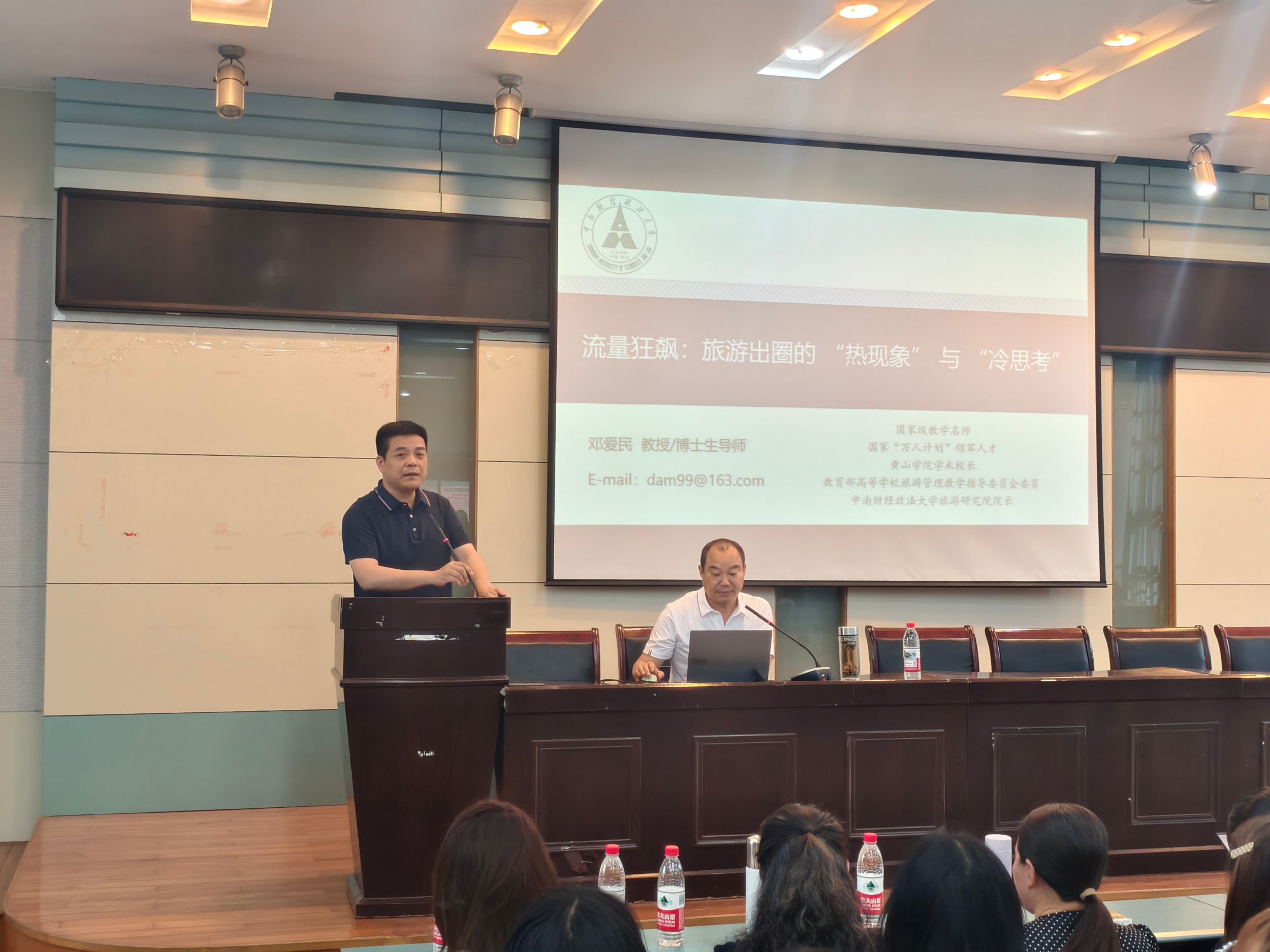 于5月14日举办第11期“学•思•享”大讲堂。本期活动特邀国家教学名师、中南财经政法大学工商管理学院博士生导师、旅游管理专家邓爱民教授担任主讲嘉宾,以“旅游出圈的热现象与冷思考”为主题,为学院师生带来一场兼具理论深度与实践启发的学术盛宴。报告由足探比分