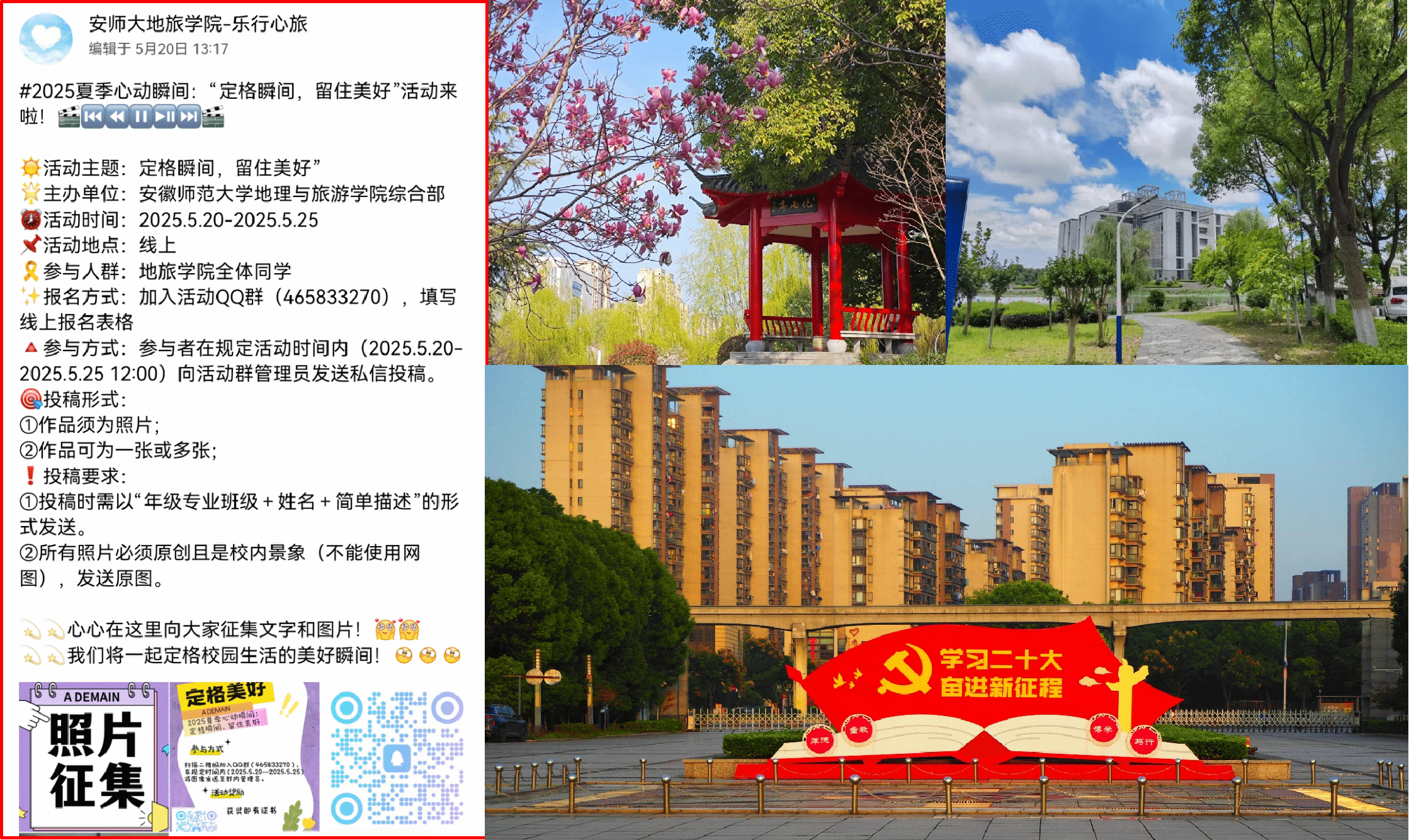 定格美好,拓展心理健康教育载体。为培养同学们学会发现美、善于欣赏美、主动创造美,引领同学们热爱美好、热爱生活,通过定格生活中的美好瞬间,唤起对生活的热爱与感恩,传递积极向上的生活态度和对美好的追求。足探比分