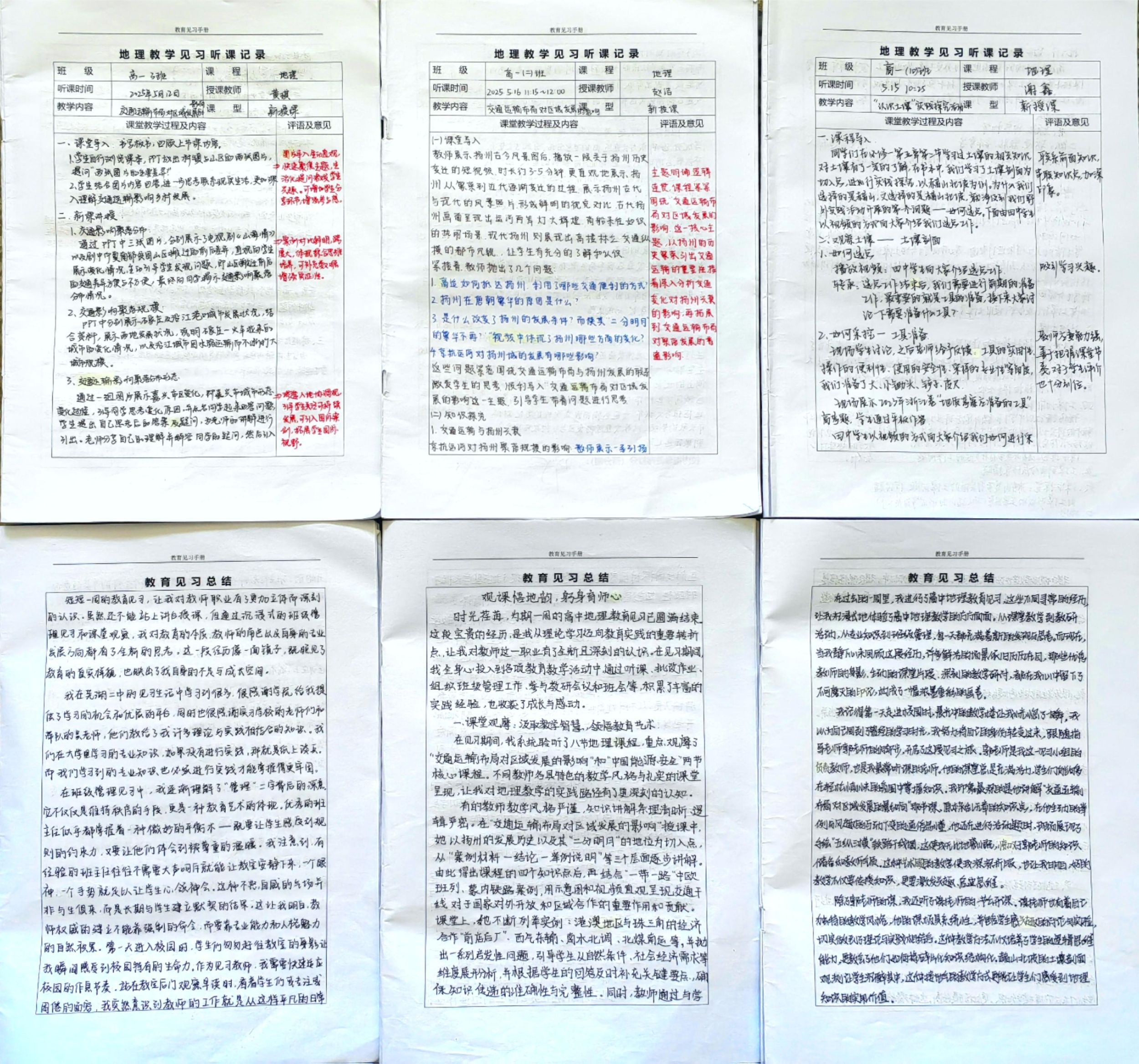 教育见习全体学生在校内指导教师和校外见习学校指导教师的指导下,全面深入见习学校,围绕课堂教学、班级管理等内容,开展参观考察、观摩学习、交流讨论等教育实践活动,了解中学地理教育教学状况以及教学改革动向,明确中学地理教学各个环节及其运行机制,把握中学地理教师的职业活动、学生的学习活动及思想状况,总结课堂教学成功经验和问题不足,明晰作为未来教师在课堂教学能力上需要努力的方向。
