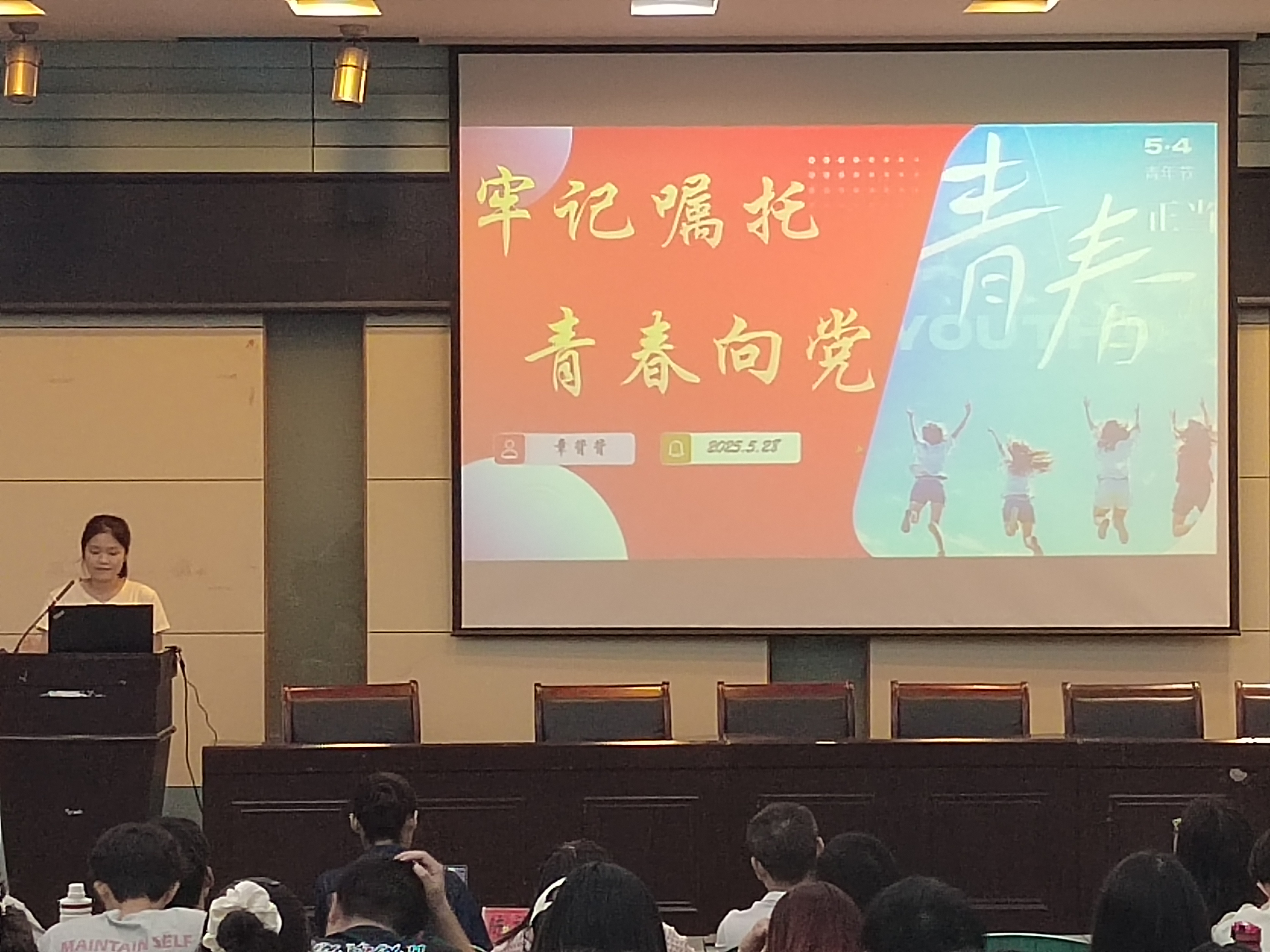 实验楼101报告厅举行。学院党委副书记付勇、团委书记韦银艳、辅导员代表及第18期学生党员教育培训班、第69期大学生入党积极分子培训班全体学员参加本次活动。