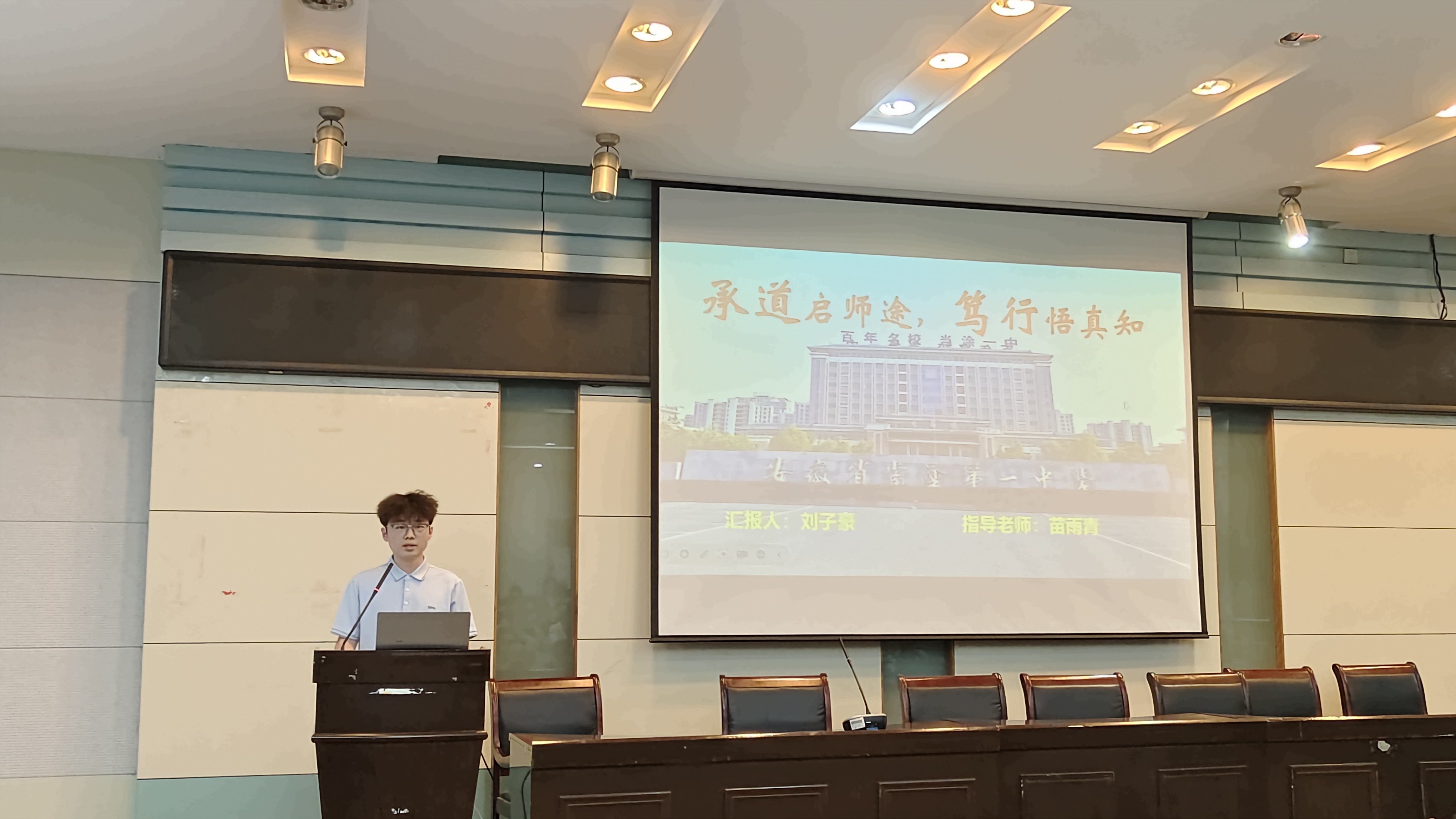 汇报结束后,实习指导老师胡春生结合各组汇报对本次实习进行了点评总结。胡春生老师引用诗词“春风得意马蹄疾,一日看尽长安花”祝贺同学们圆满完成教育实习任务。他强调,教育实习是学院教学计划中的重要环节,是师范生将理论与实践相结合、提高自身综合素质的宝贵机会。他肯定了同学们在实习期间取得的进步,并鼓励大家今后要继续深入实践,在实践中成长,努力提高教学技能,积极培养就业素养。