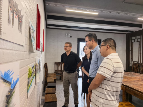 张顺一行首先观摩了同学们的实习实践成果汇报。在随后的座谈会上,同学们表示,在黄山黟县独特的地理与人文环境中,不仅深化了专业知识应用能力,提升了专业技能,更收获了珍贵的实践经验和同学间真挚的情谊。这段沉浸式的学习生活经历让大家受益匪浅。韩会然寄语实践团队的同学们,要发挥多学科融合的优势,勇于探索,争取在实践中产出高质量成果。付勇鼓励同学们珍惜宝贵的实践机会,在参与中学习,在挑战中成长,将实践所得内化为个人成长的养分。
