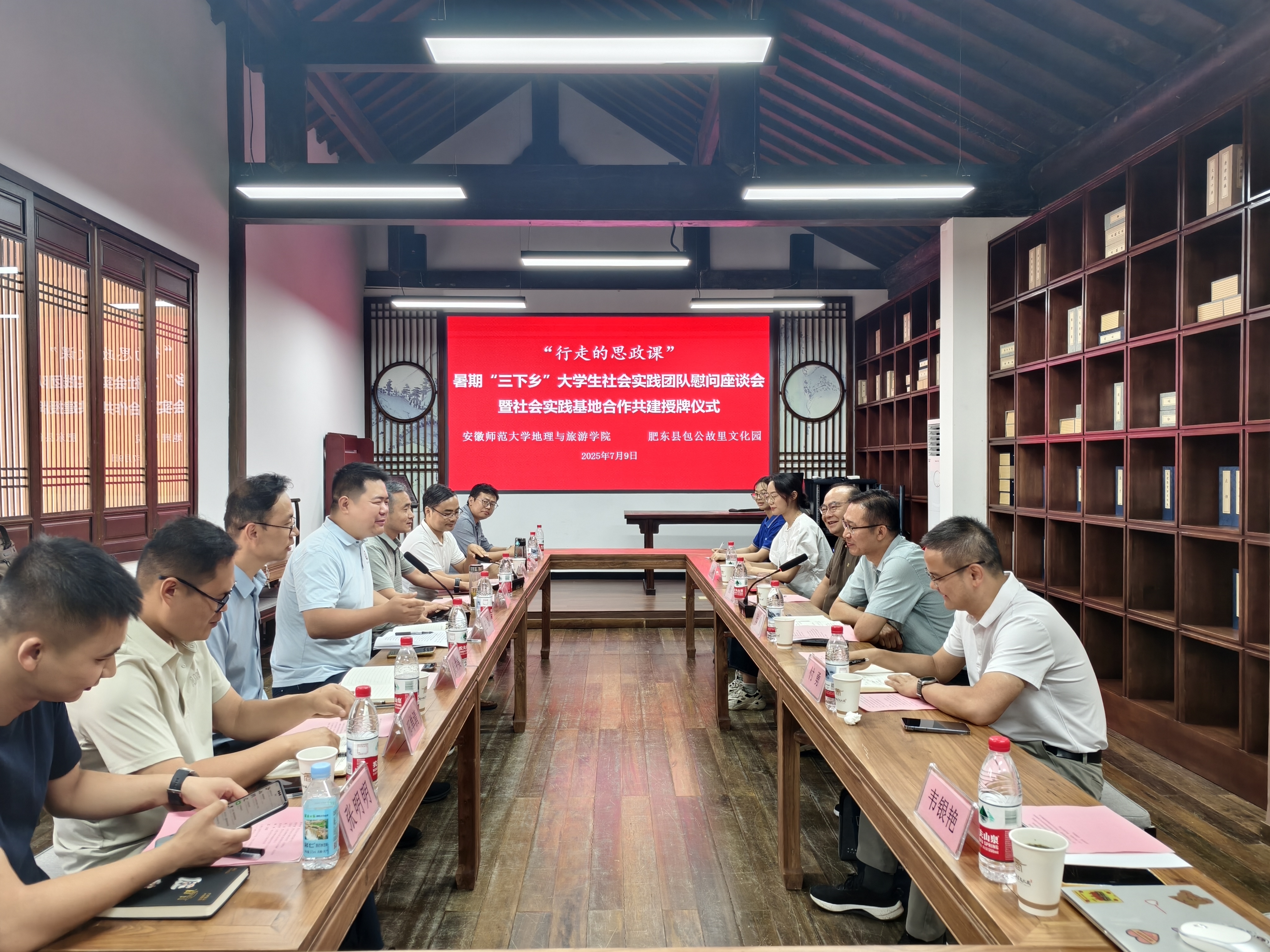 赴合肥“正气庐州路,青春信仰行”社会实践团队的全体师生。肥东县包公镇党委书记、我校2014届旅游管理专业校友王磊,党委副书记、我校徐井美,文旅办副主任张燕,合肥东部新城文旅传媒有限公司董事长黄俊华等陪同,并举办安徽师范大学赴合肥“正气庐州路,青春信仰行”社会实践团队慰问座谈会暨社会实践基地合作共建授牌仪式。活动由合肥东部新城文旅传媒有限公司副总经理王家发主持。