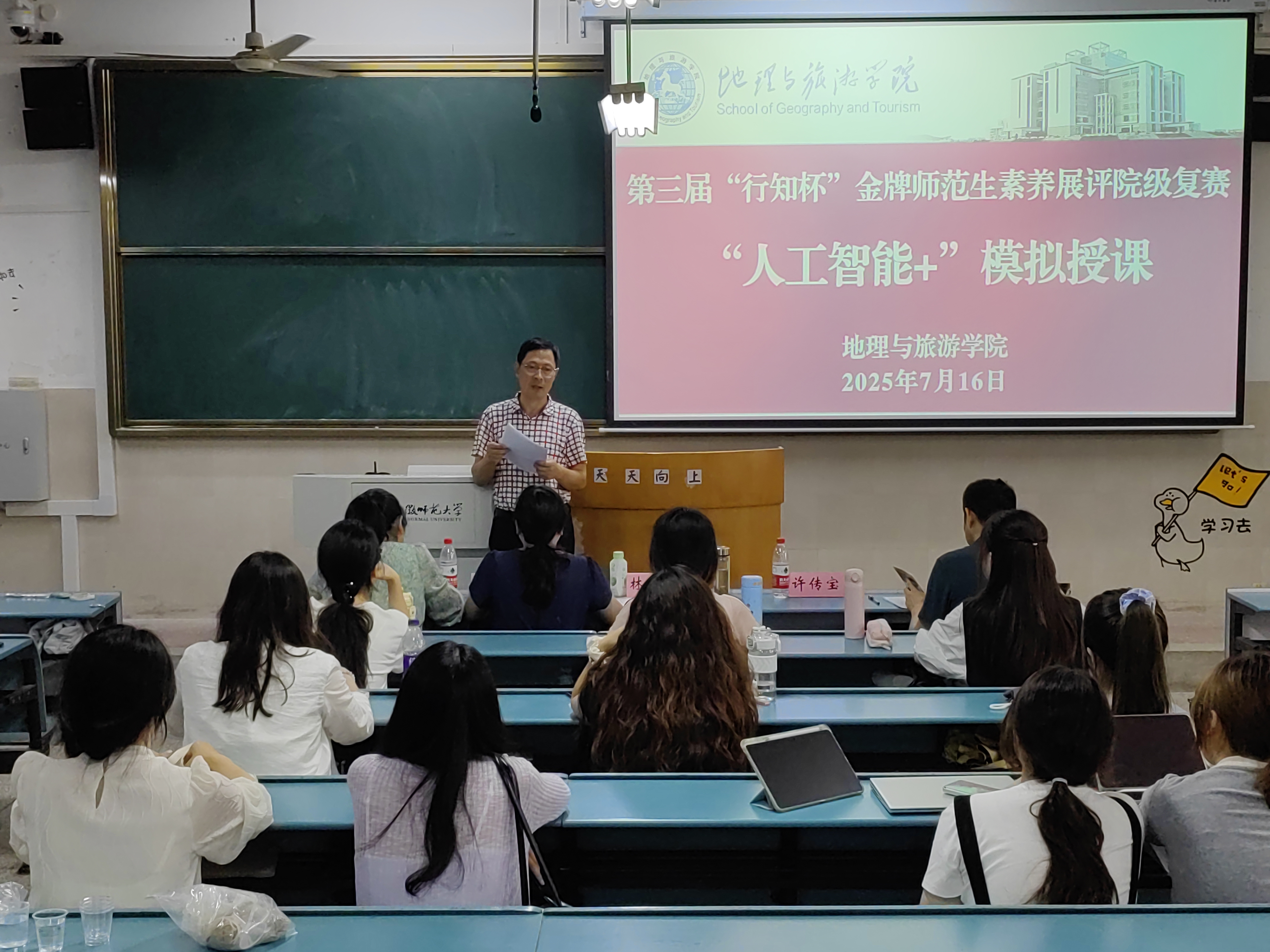 2025年地理学科暑期小学期实训学生全员参加第三届“行知杯”金牌师范生素养展评活动,聚焦“入职顺、适应快、潜力大”的优秀师范生培养目标,在特聘教授、校内导师指导下强化训练,聚力教学技能提升、教案和板书设计等核心技能、素养,学科知识传授能力、课堂教学实践能力得到有力提升,为成长为“学科核心素养高、课堂教学能力卓越”的“金牌师范生”奠定了坚实基础。