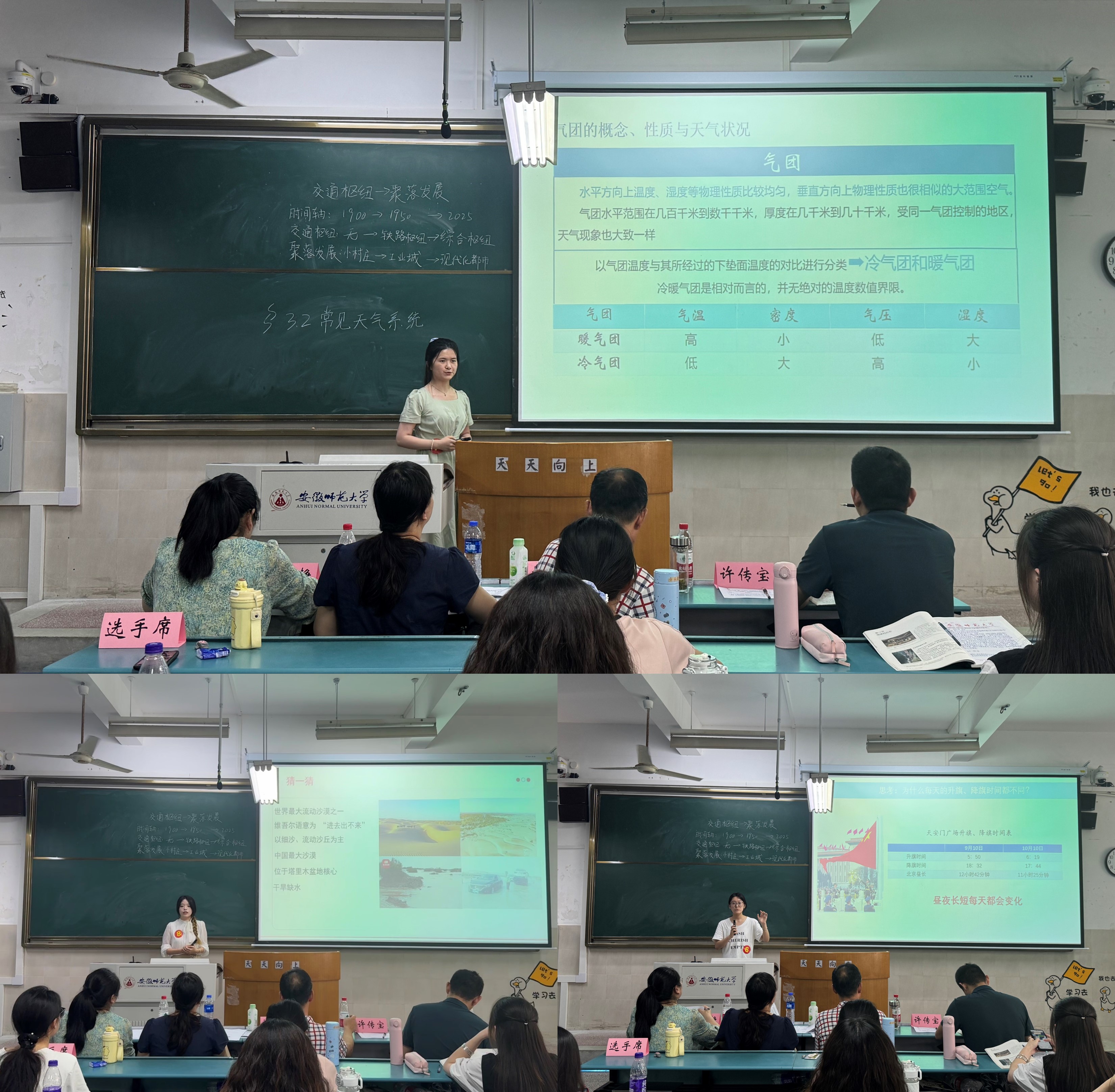 在学校行知楼2030302、2030303、2030304举行教学板书、教学教案以及“人工智能+”模拟授课、主题演讲展评院级选拔,马鞍山市红星中学年级部主任林章和、合肥市第一中学地理学科主任许传宝、合肥市第七中学地理学科主任程娣、淮南市第一中学姜静静等特聘教授、地理科学专业负责人、校内导师代表等担任评委。