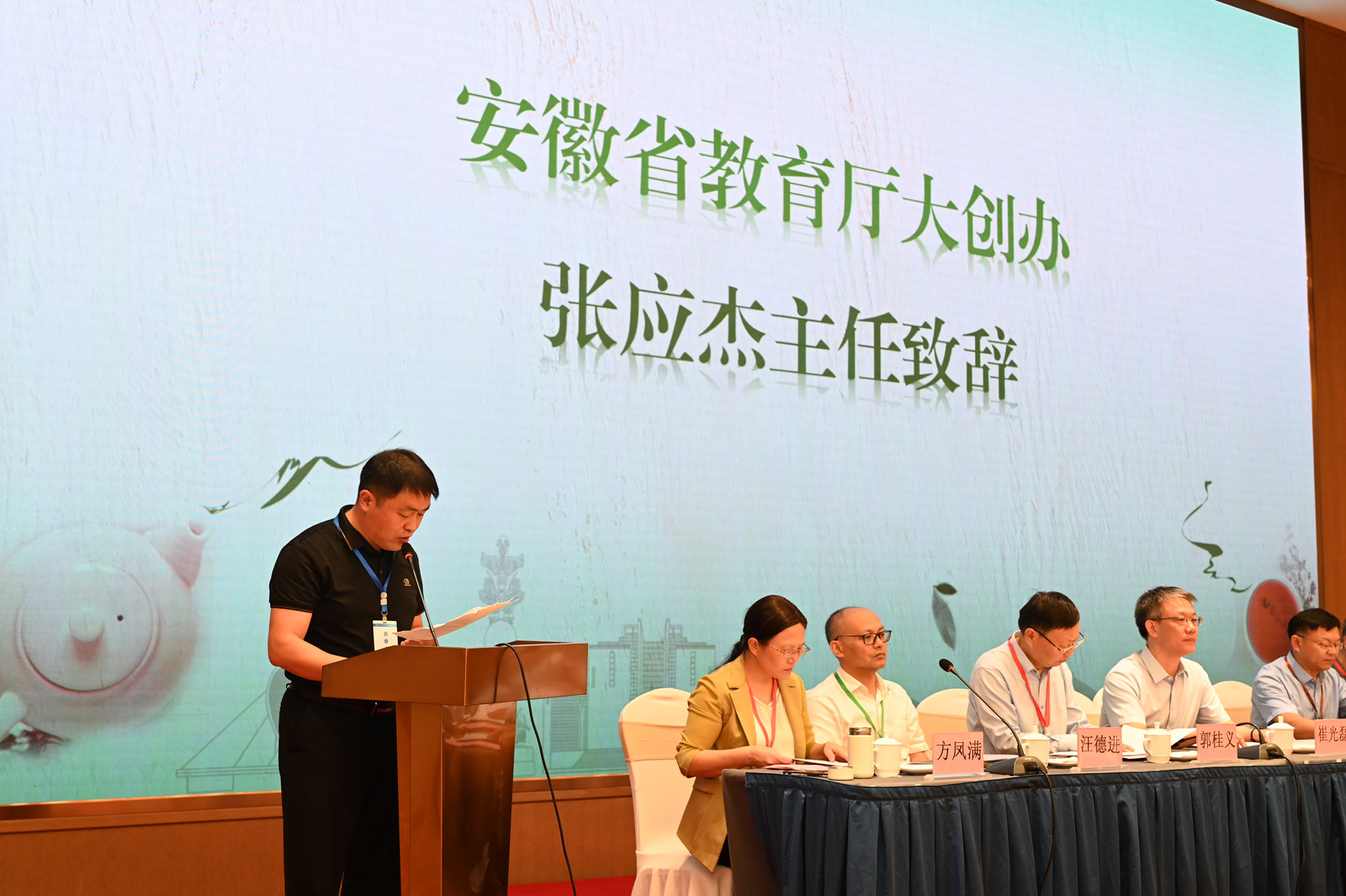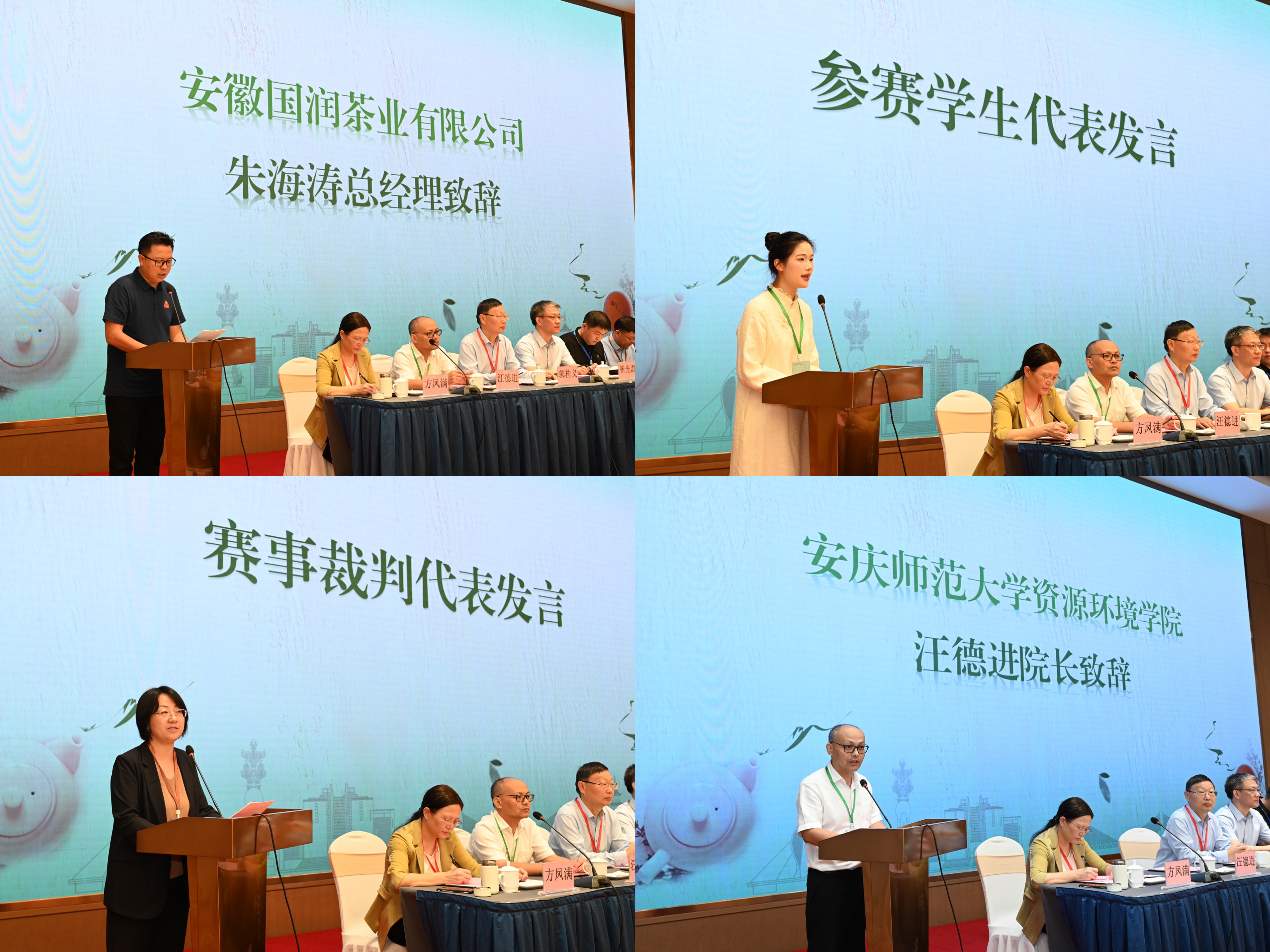 张应杰在致辞中充分肯定了安徽师范大学在此次赛事组织和筹备中的周到服务,点明茶文化大赛对于青年学子坚定文化自信、增进文化认同、促进文化交流都具有十分重要的意义,期待各团队赛出成绩、赛出风采。