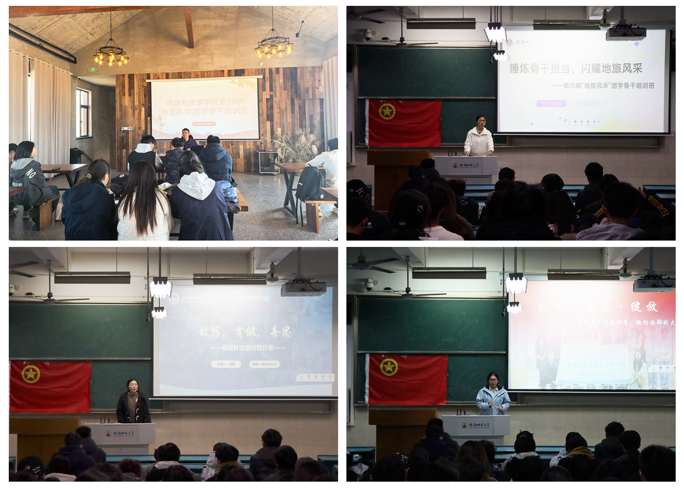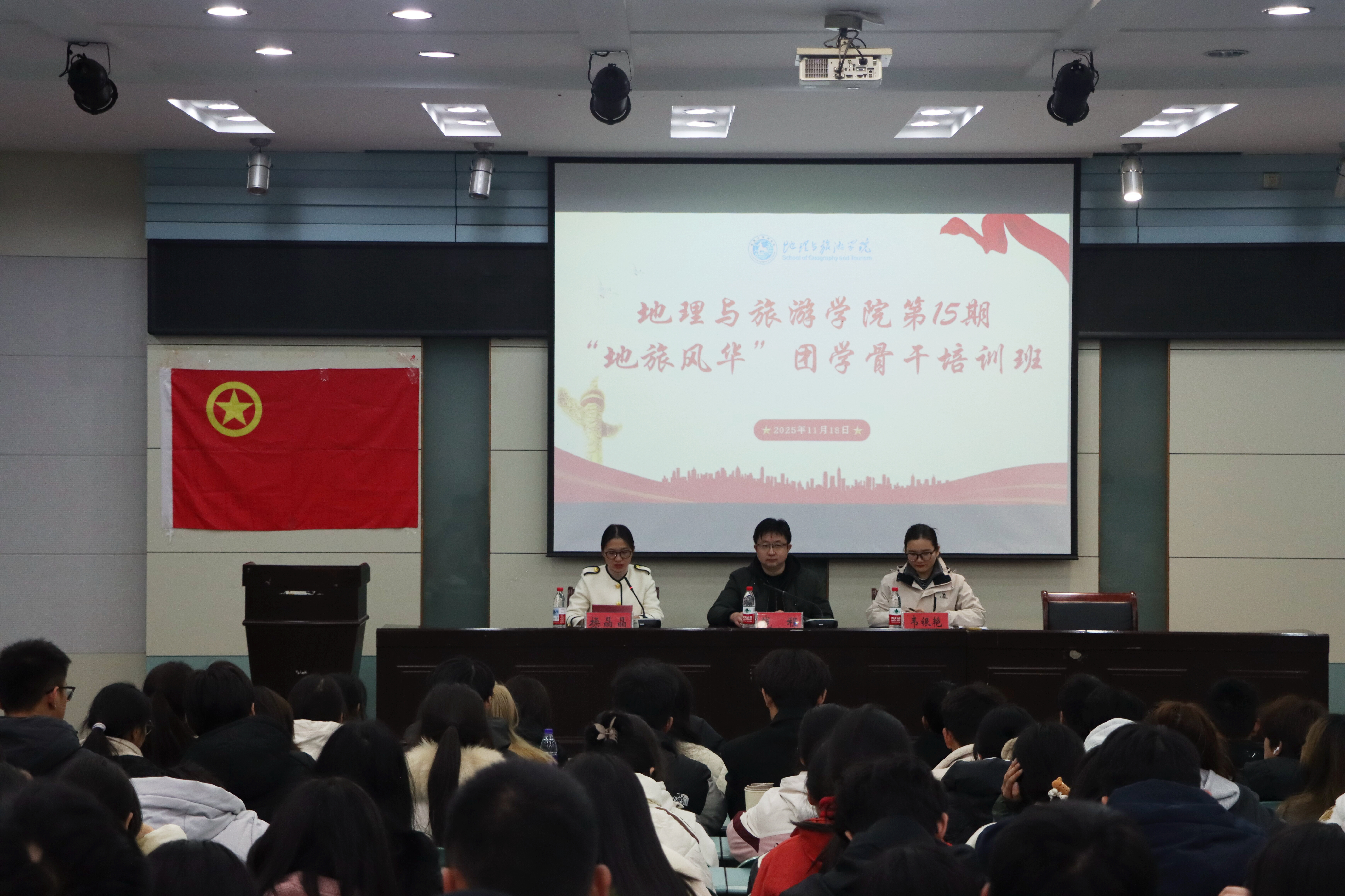 举办第15期“地旅风华”团学骨干培训班。院党委副书记钱程、院办公室主任陈健、院团委书记韦银艳、院团委副书记操晶晶参加教学活动,院团委、学生会骨干及各班级主要学生代表共同参与学习。