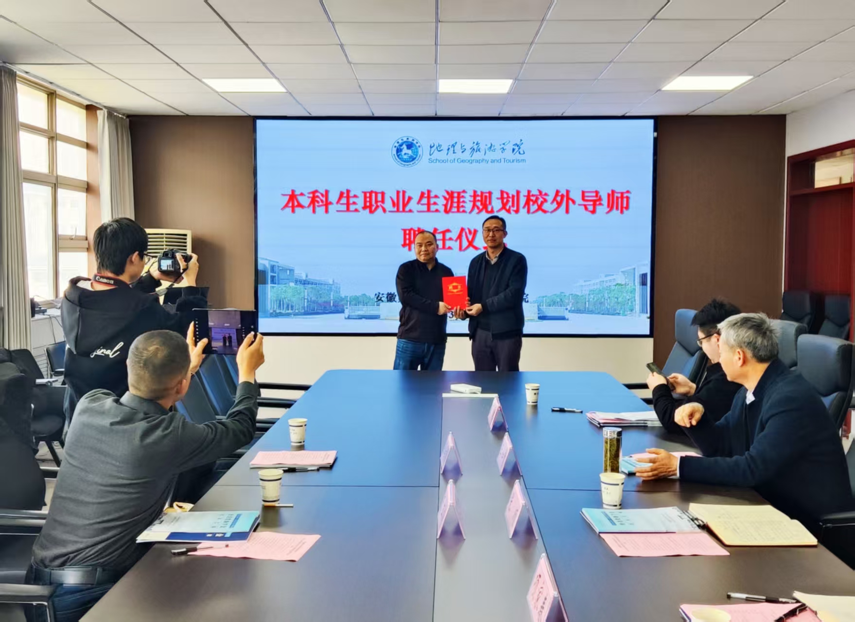 张顺对朱立松、王结明先生捐资助学的善行义举表示衷心感谢,并代表学院为王结明颁发本科生职业生涯规划校外导师的聘书。王如意勉励获奖受助同学珍惜荣誉,勤奋学习,发奋成才,积极投身公益实践,在青春的赛道上奋力奔跑,取得更大成绩。
