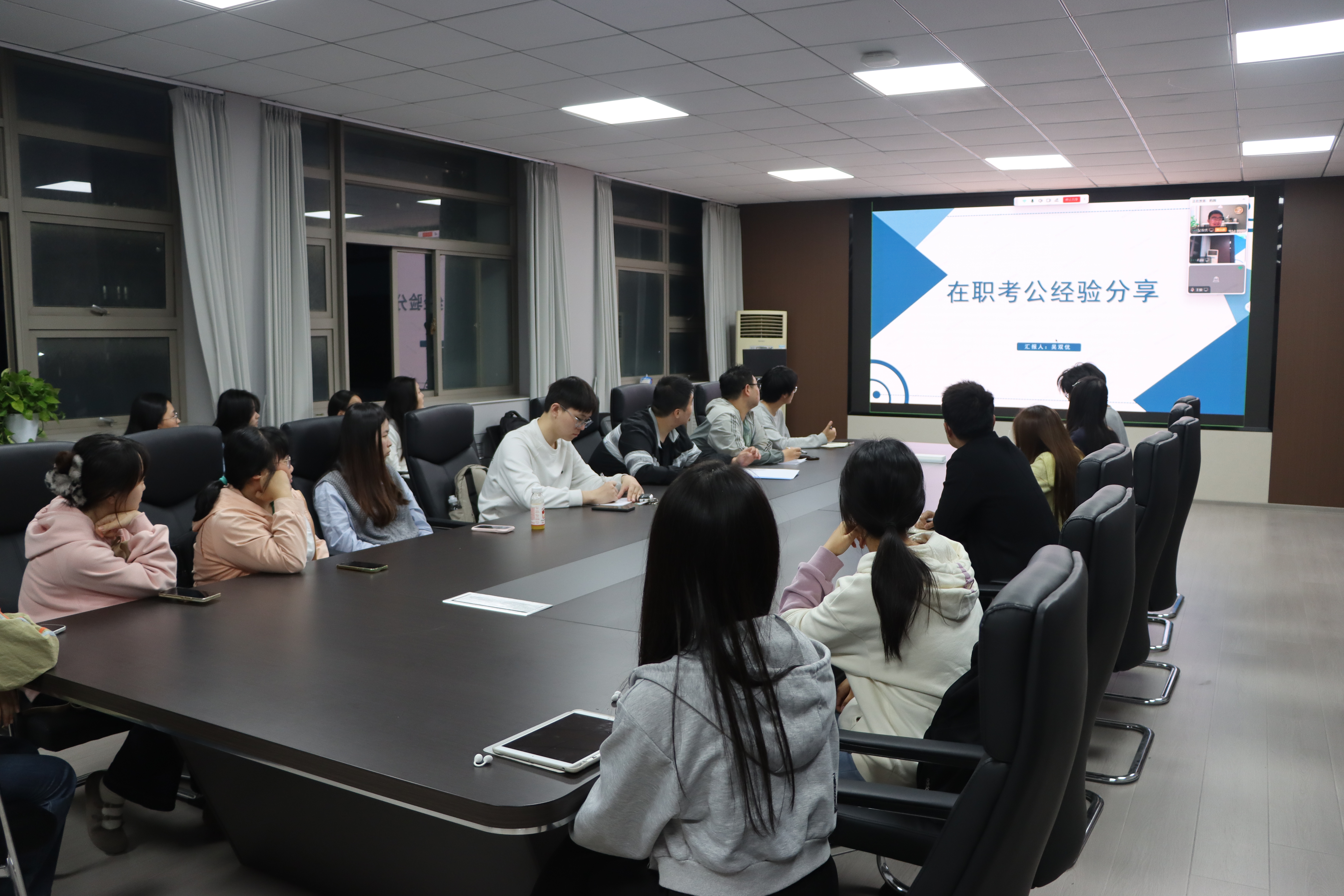 在学院行政楼三楼会议室举办就业经验分享会。会议采取线上线下同步方式进行,由土地资源管理专业教师程超主持,特邀土地资源管理专业2025届本科毕业生吴双优主讲,面向全体同学分享在职考公与就业的成长历程和宝贵经验。