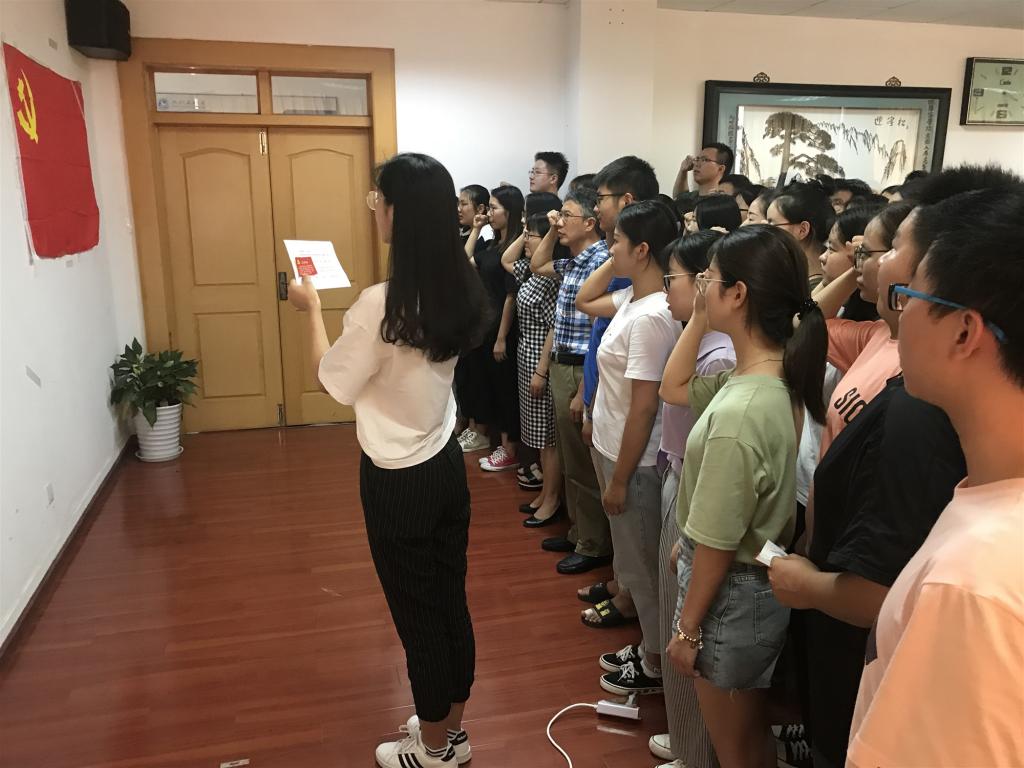 党委在院三楼会议室举行新党员“七一”入党宣誓仪式,学院党委书记贾冠忠、副院长赵冬梅、党委秘书、各学生支部书记、辅导员、2019年新发展入党的55名预备党员和入党积极分子出席了仪式,仪式由院党委秘书施华转主持。
