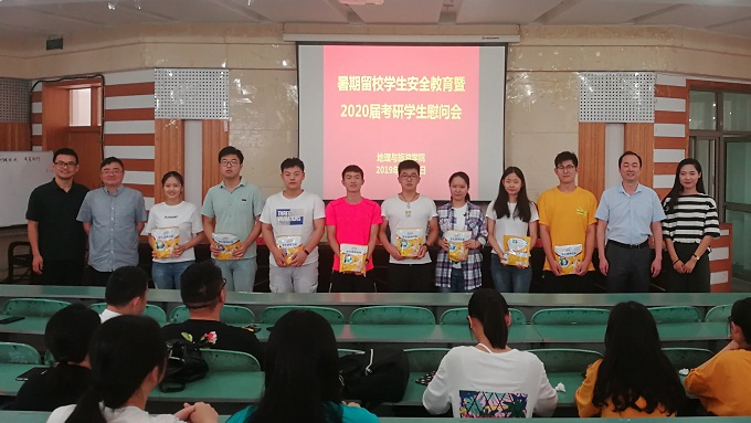 在财务处二楼报告厅举行了暑期留校学生安全教育暨2020届考研学生慰问会。院长苏勤、院党委副书记乔静、院团委副书记陈祥云、毕业班辅导员以及2020届留校考研复习同学参加了本次会议。会议由辅导员陈健主持。