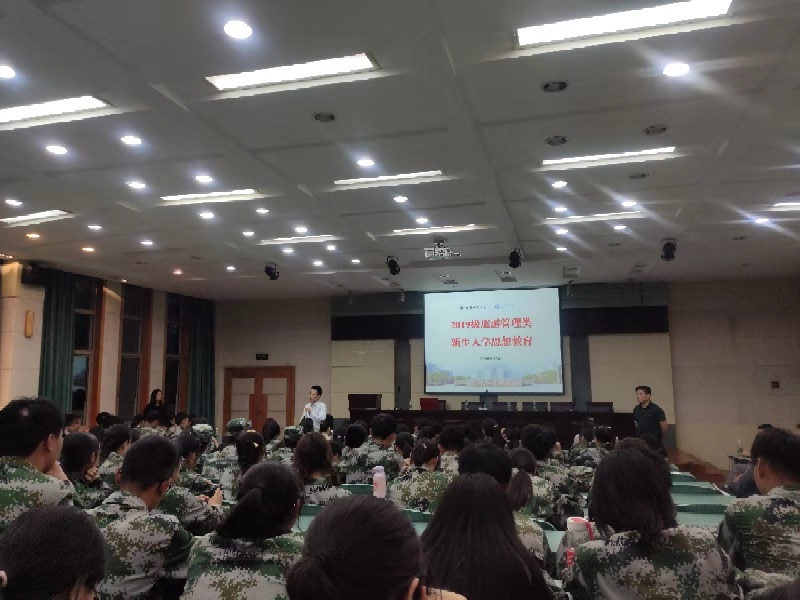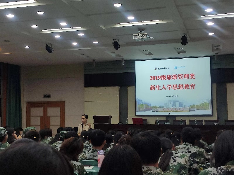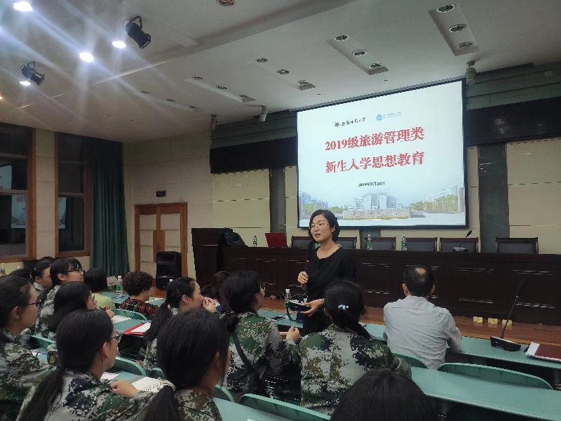 2019级旅游管理类专业新生入学思想教育在院实验楼101举行。酒店管理专业负责人尹寿兵副教授主持会议,旅游管理专业负责人杨效忠教授等专业课老师、辅导员徐倩及全体2019级旅游管理类专业新生参会。