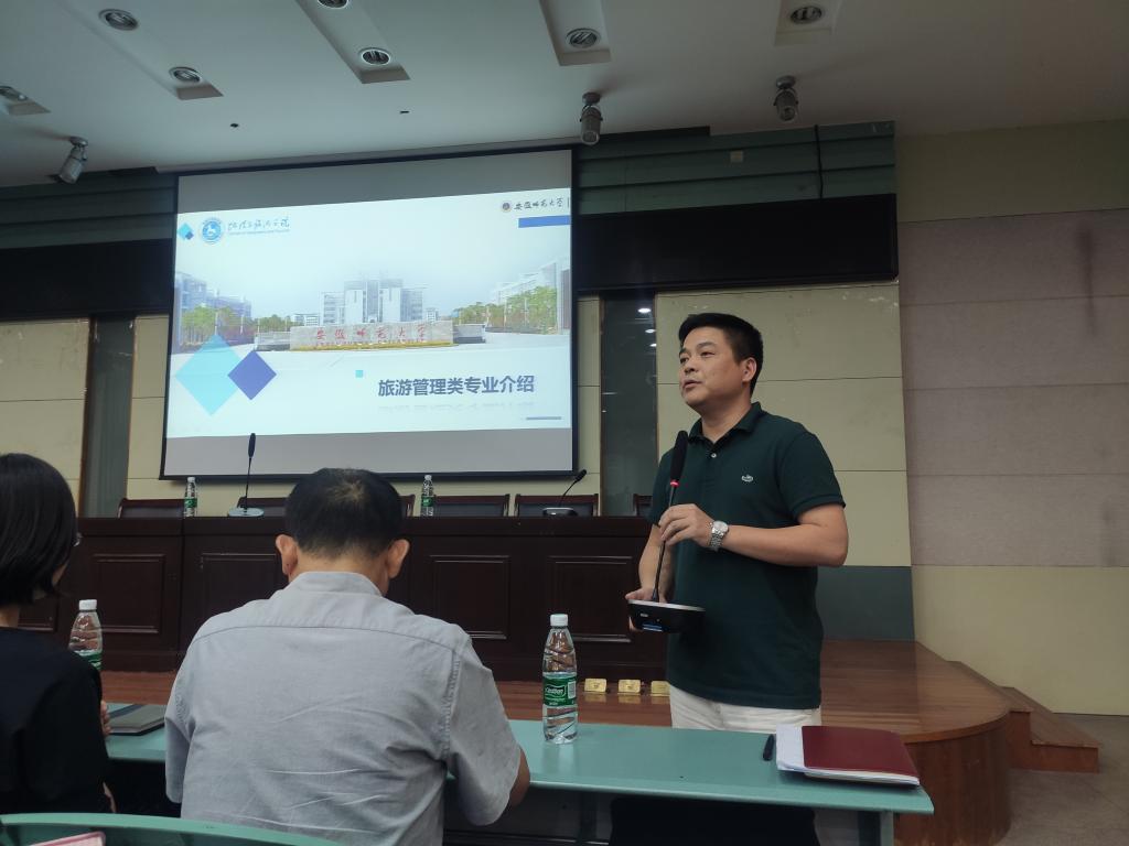 会上,旅游管理类专业任课教师就自身情况和教授课程进行了简单而诙谐的介绍,并表达了对新生们大学表现的期许。期间,王莉老师现身说法,以自身经历教导新生们选择的重要,热爱的美好;蔡善柱老师广引数据,向新生展现当代旅游业光明前景;杨钊老师辩证分析了当前同学们的满腔学习热情与任务的艰巨,鼓舞新生们迎接挑战、成就自我的斗志。