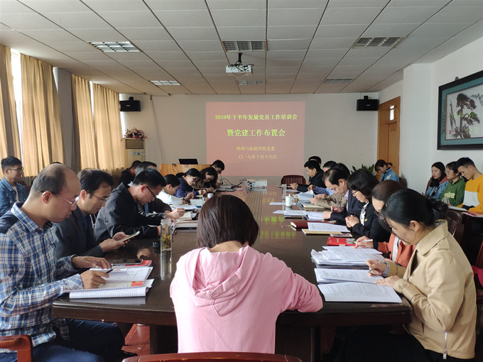 在学院三楼会议室召开2019年下半年发展党员工作培训会暨党建工作布置会。学院党委委员、全体支部委员参加会议。会议由院党委书记贾冠忠主持。