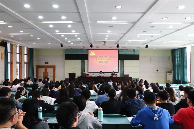 党委书记贾冠忠、本期培训班指导老师、院退休老党员陶根苗以及本期入党积极分子培训班的142位同学。典礼由院党委秘书、院分党校班主任施华转主持。