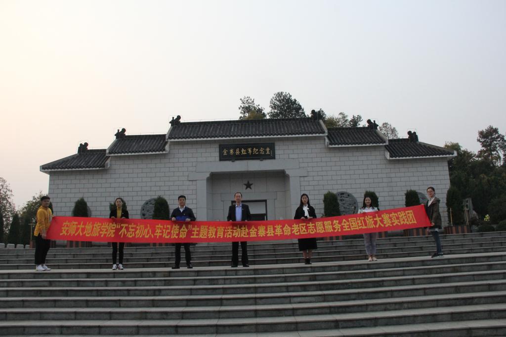 党委副书记乔静、团队指导教师尹寿兵、团委书记陈祥云、辅导员黄世彤一行赴金寨为团队指导、慰问志愿者和礼仪队成员。并借大赛在革命老区金寨举办之际,组建“不忘初心、牢记使命”主题活动赴金寨县革命老区志愿服务全国红旅大赛实践团,于赛后前往金寨县革命烈士陵园开展主题教育活动。