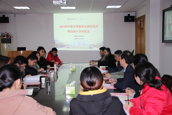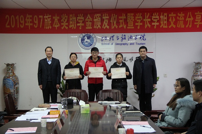 王美)12月21日下午,安徽师范大学97旅本奖助学金颁奖仪式暨学长学姐交流分享会于学院行政楼三楼会议室举行。我校1997级旅游管理专业本科班毕业生代表安徽工业大学党委常委、学校办公室主任窦贤琨、安徽商贸职业技术学院工商管理系副教授齐莉莉、安徽工业经济职业技术学院人事处张凤琴、安徽师范大学酒店管理系主任尹寿兵,校团委书记梁燕,足探比分