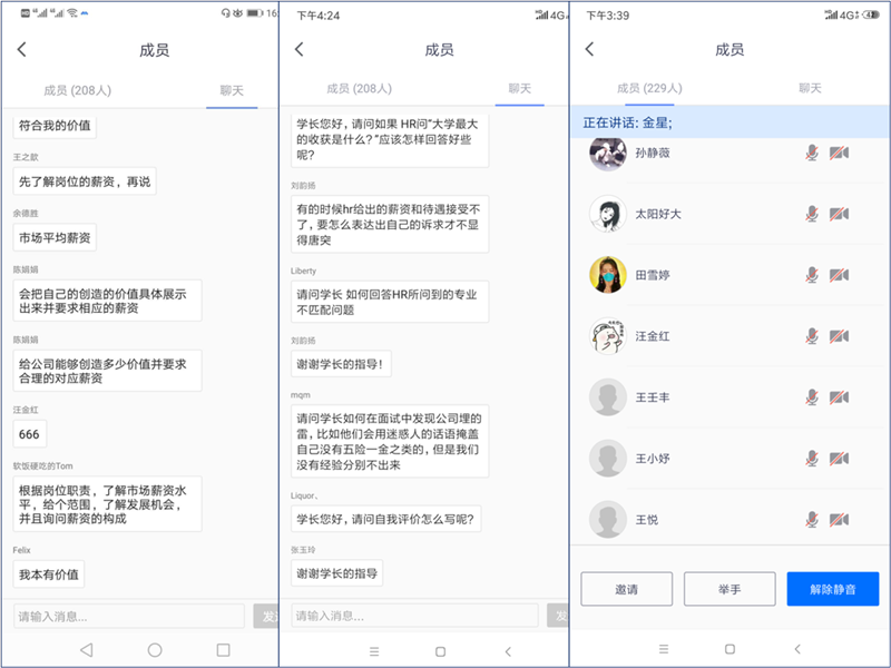 同学们积极在直播平台参与互动,主动留言,及时回复主讲人提出的问题,并就“求职期间心理状态如何调试”“如何确保面试过程中不怯场”“如何在面试中进行自我评价”等问题展开交流与讨论,直播现场氛围热烈。