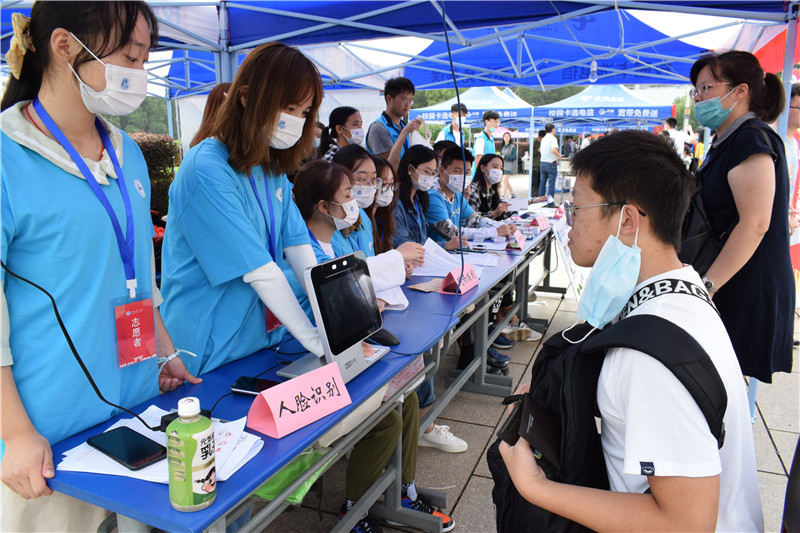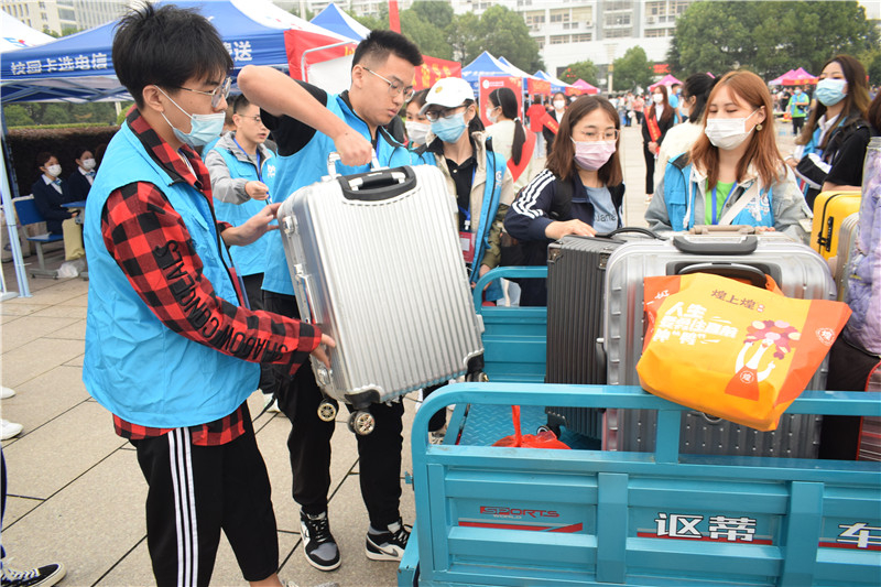 志愿者们成为校园迎新工作中一道靓丽的风景线。