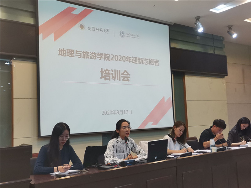 于学院实验楼101教室召开了2020年迎新志愿者培训会。院团委书记陈祥云、团委副书记徐倩,新生辅导员彭媛媛、赵佳慧、刘少杰等出席此次会议。会议上,陈祥云强调了疫情防控常态化形势下迎新工作的相关要求,从疫情防控、安全纪律、工作态度和文明礼仪四个方面讲解了迎新时的注意事项,并指出今年的迎新工作要确保做到安全、有序、便捷、高效。